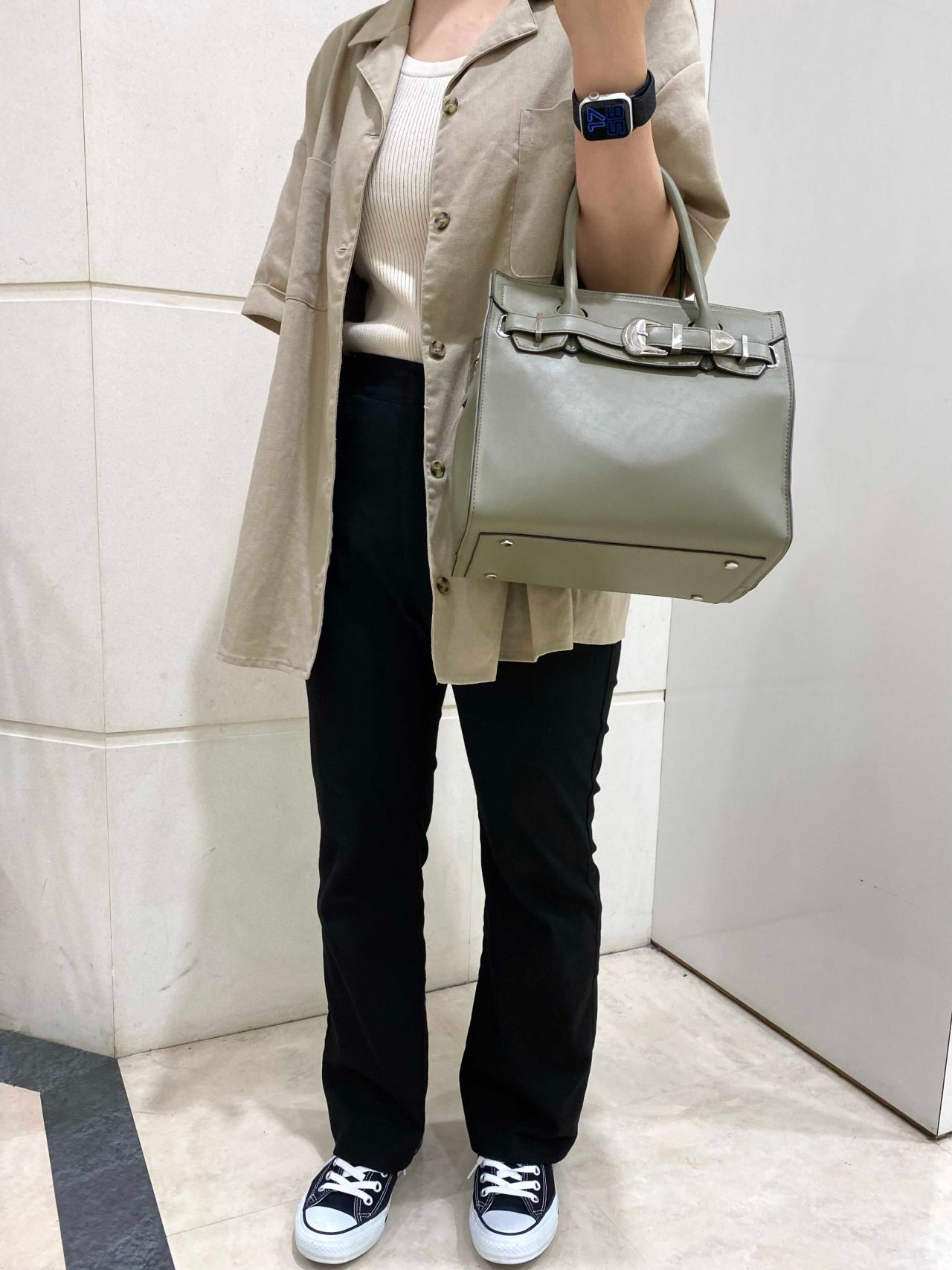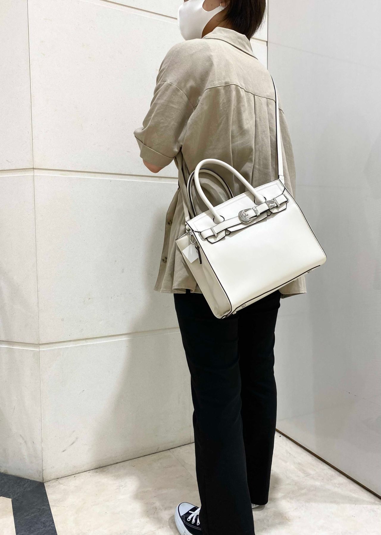 ウエスタン調のバッグルがポイントになっていて、色がブラック、ホワイト、ブラウン、カーキと落ち着いた色になっているので服装も合わせやすいです!