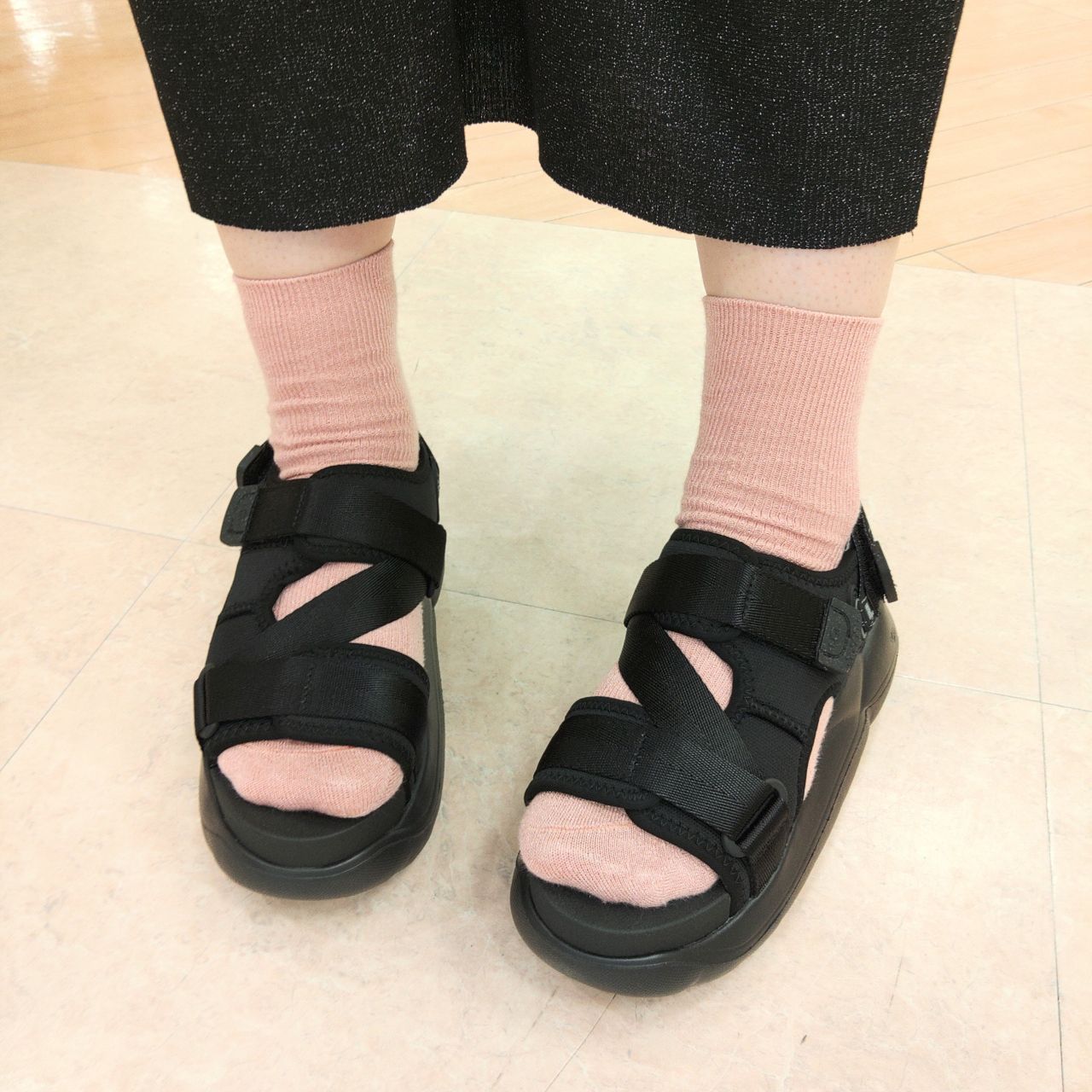 緩めにして靴下コーデを楽しんだり、
