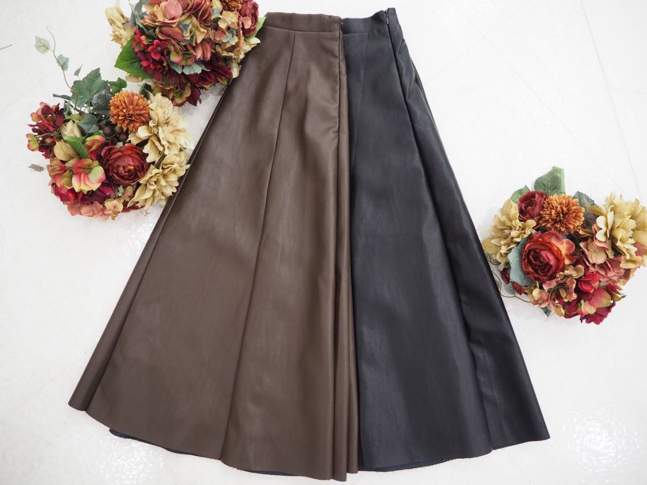 こちらのスカートは、今流行りのフェイクレザースカートです❤︎
