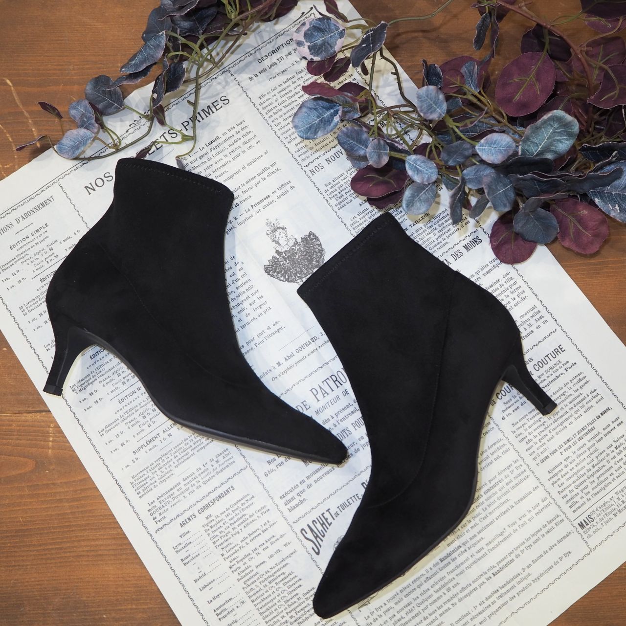 すっきりとしたポインテッドトゥのベーシックなショートブーツ