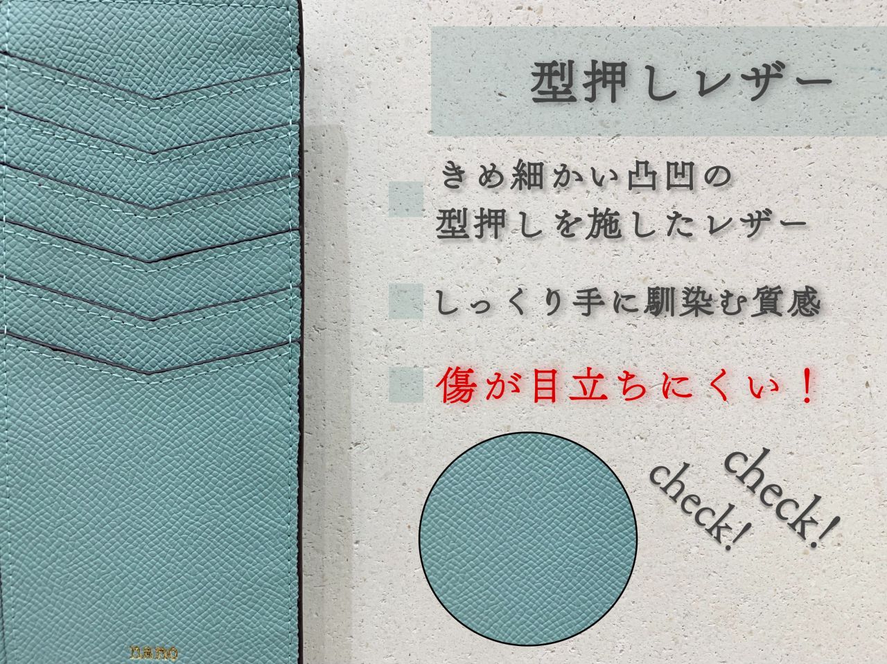素材は型押しレザーを採用しており