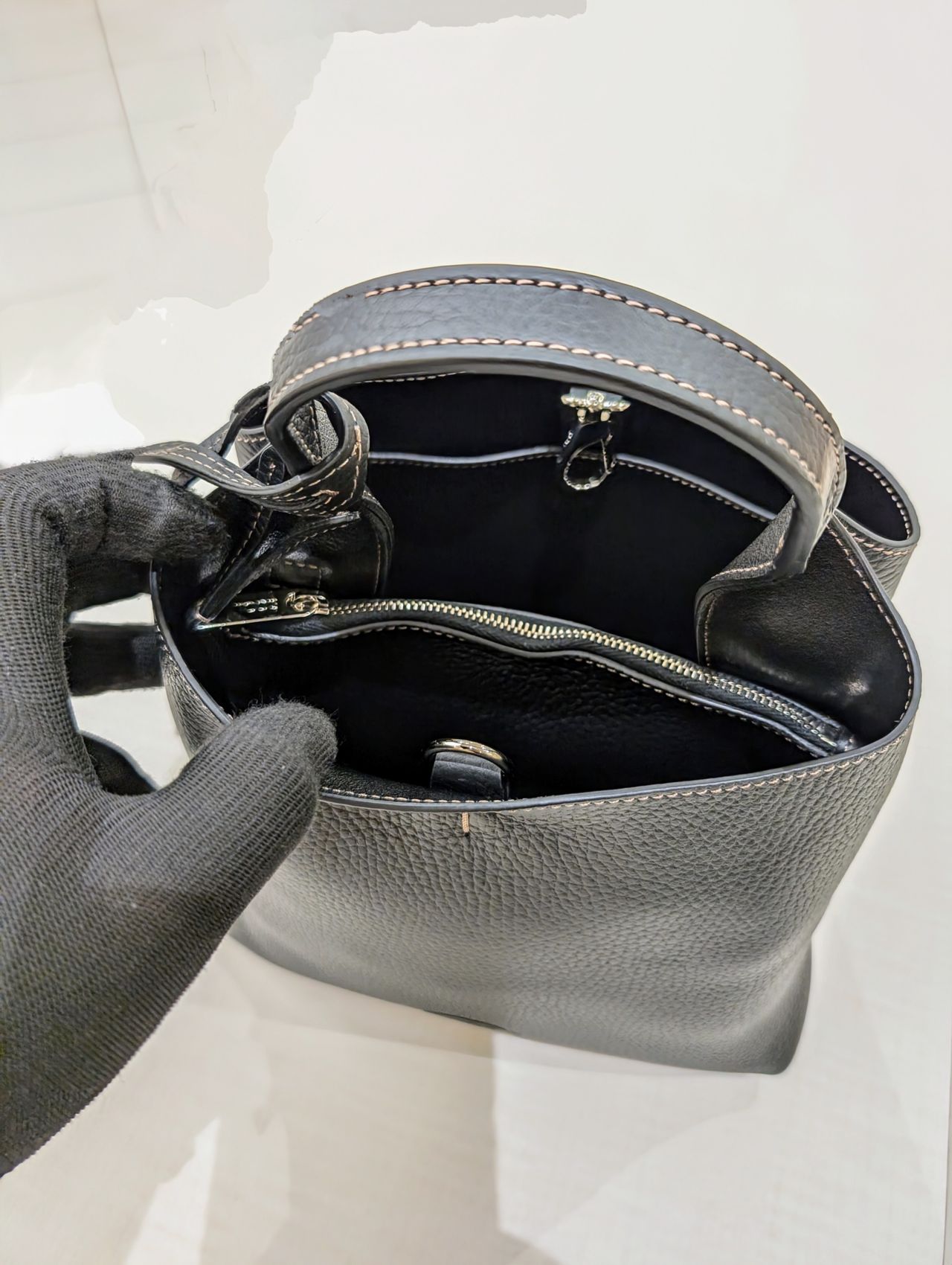 ファスナー付きポケットで仕切られています。