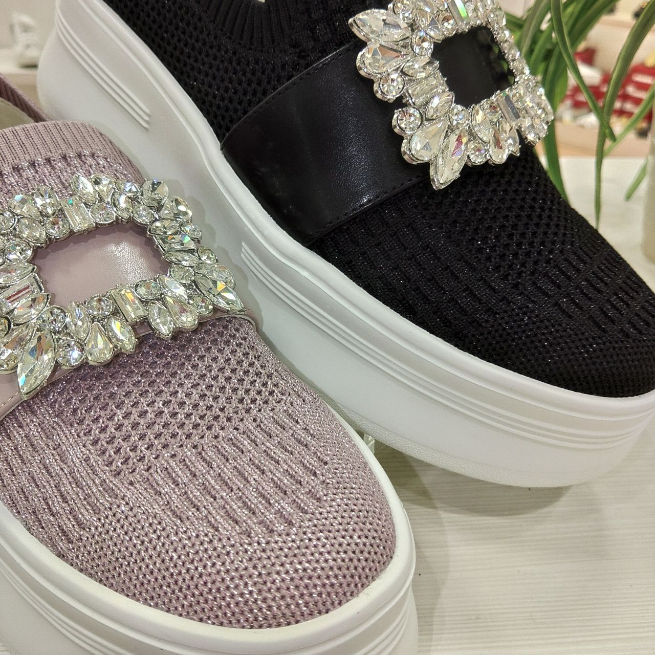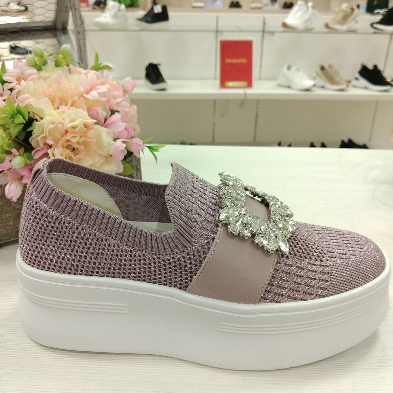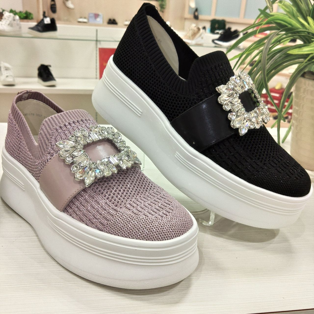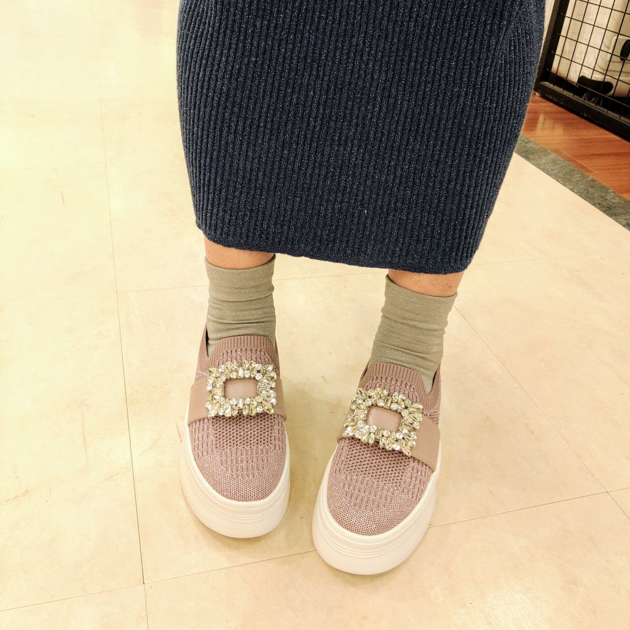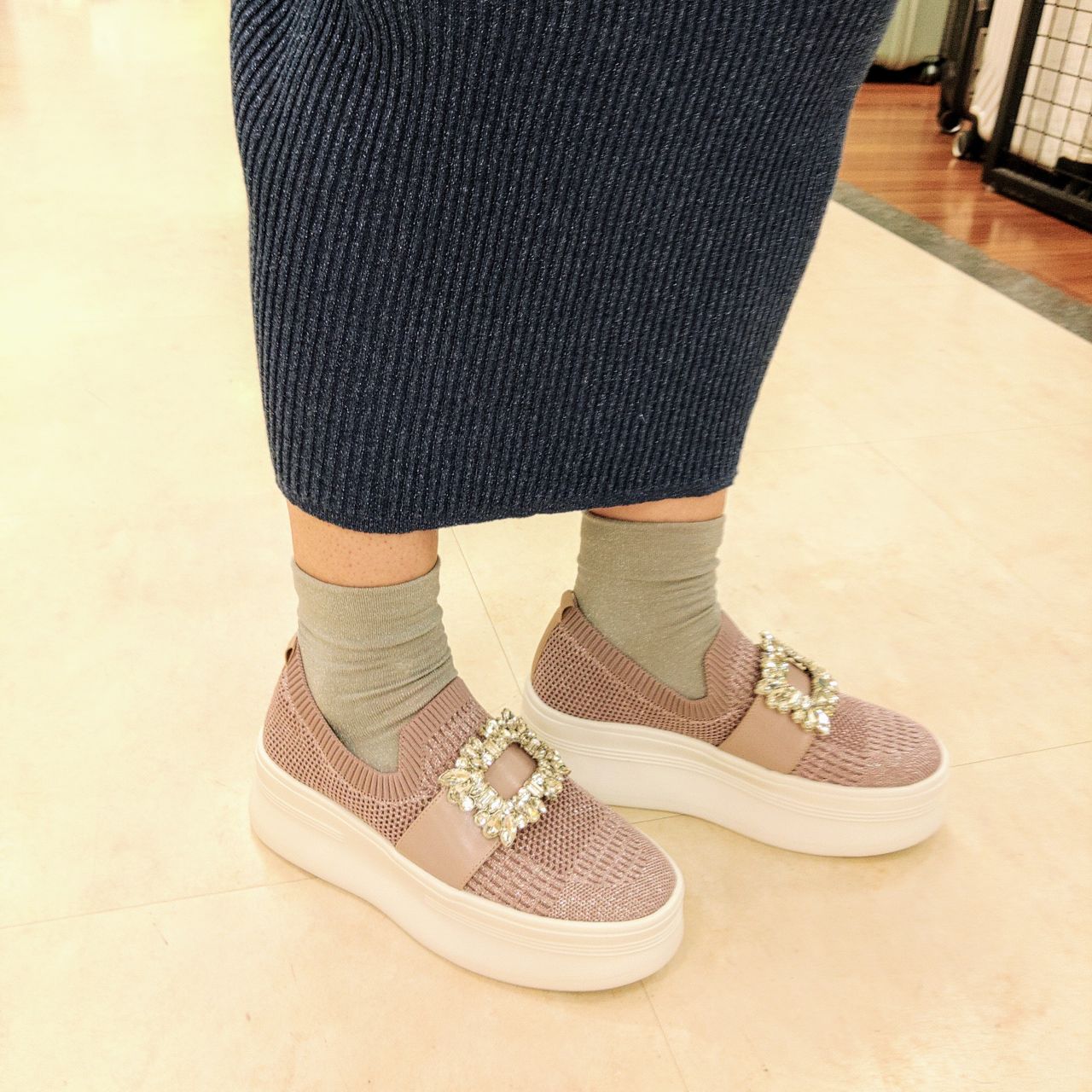 厚底のニットスニーカーに、