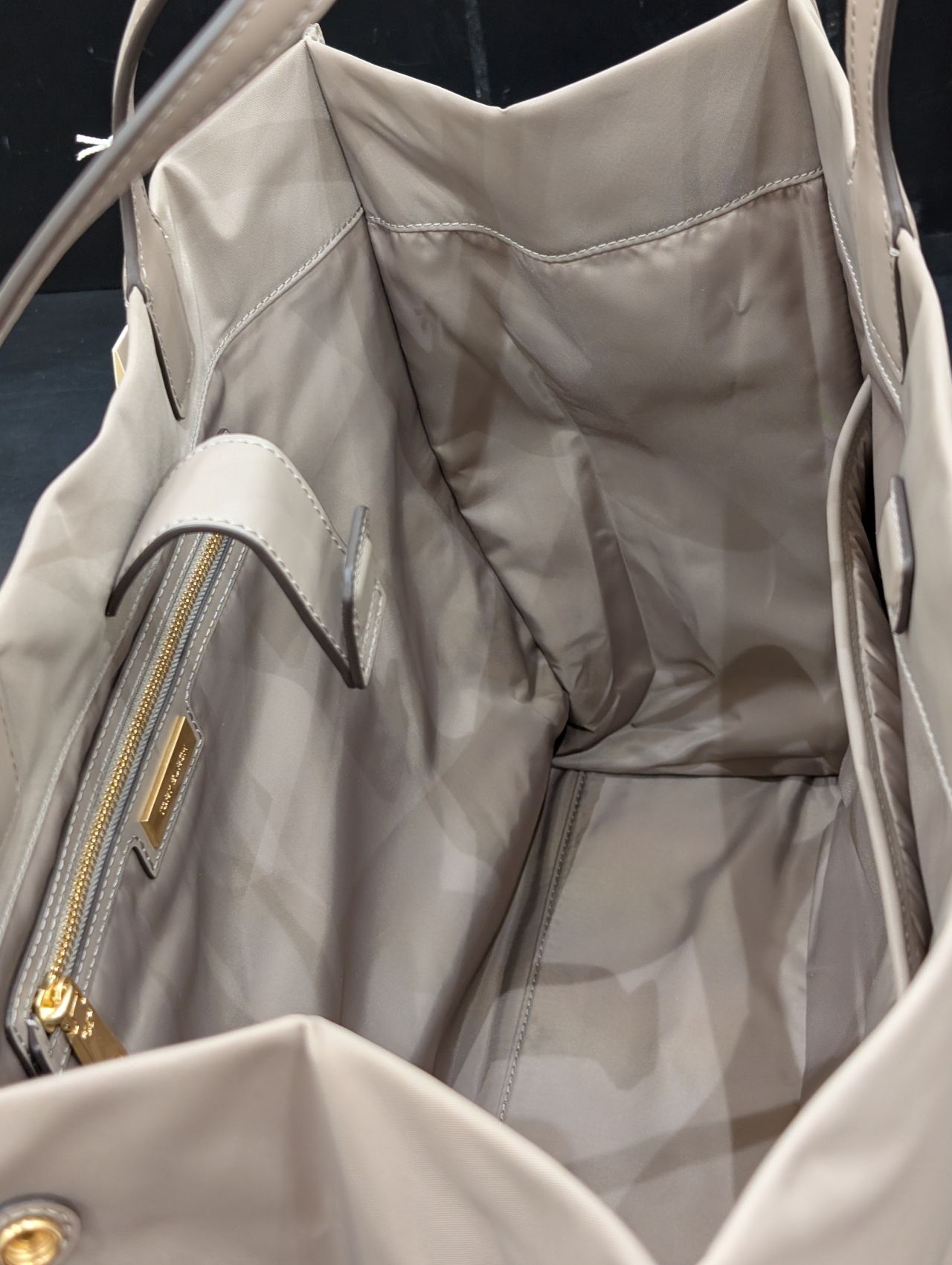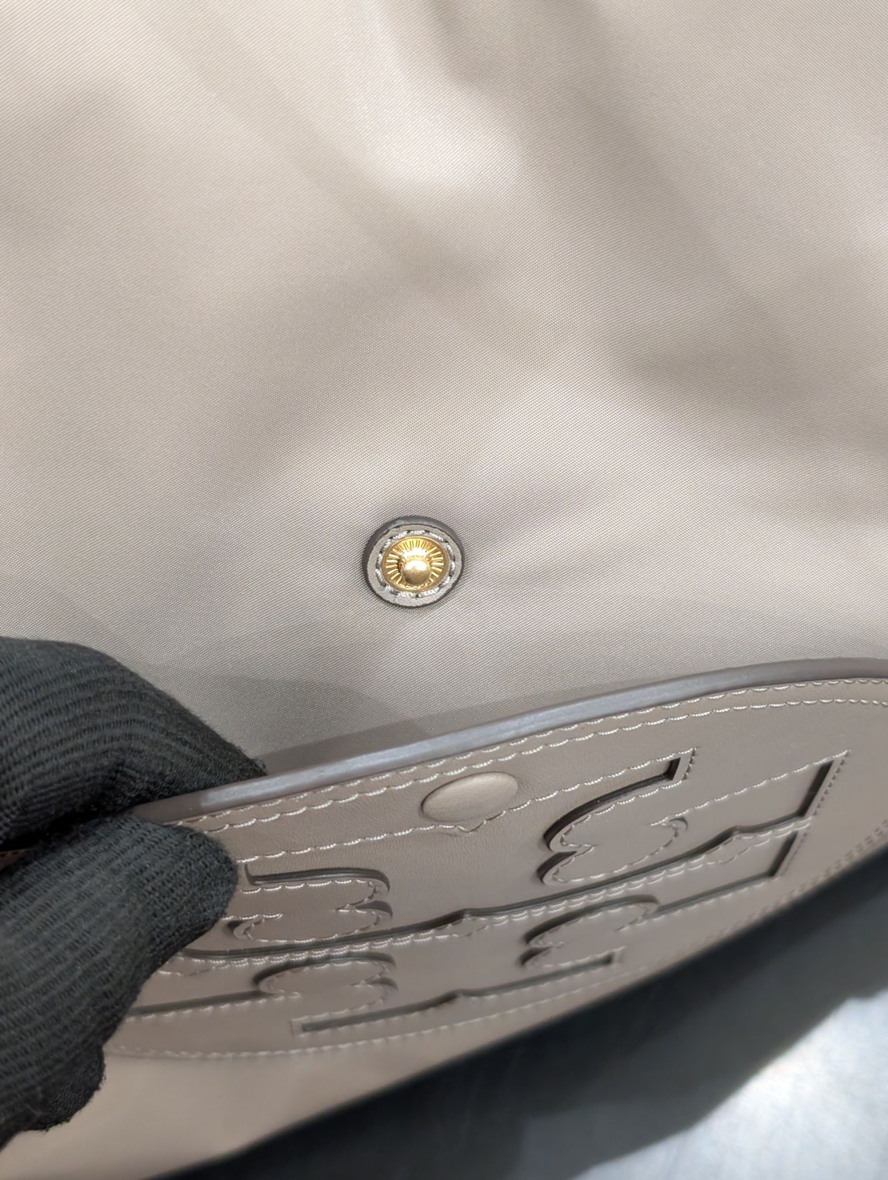 外側のブランドロゴにはポケットを設けており