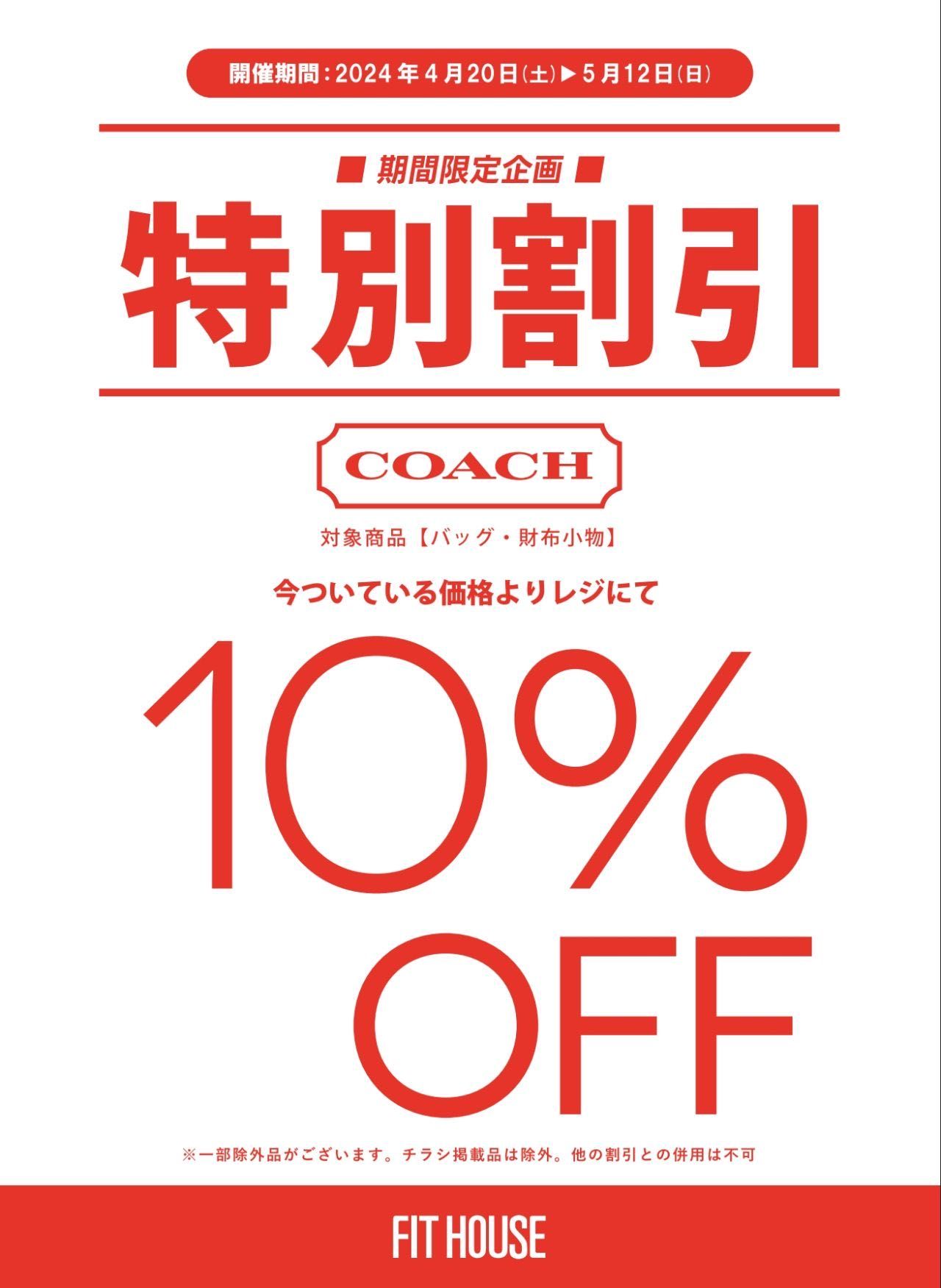 COACHバッグ、小物が全品10%オフです!!