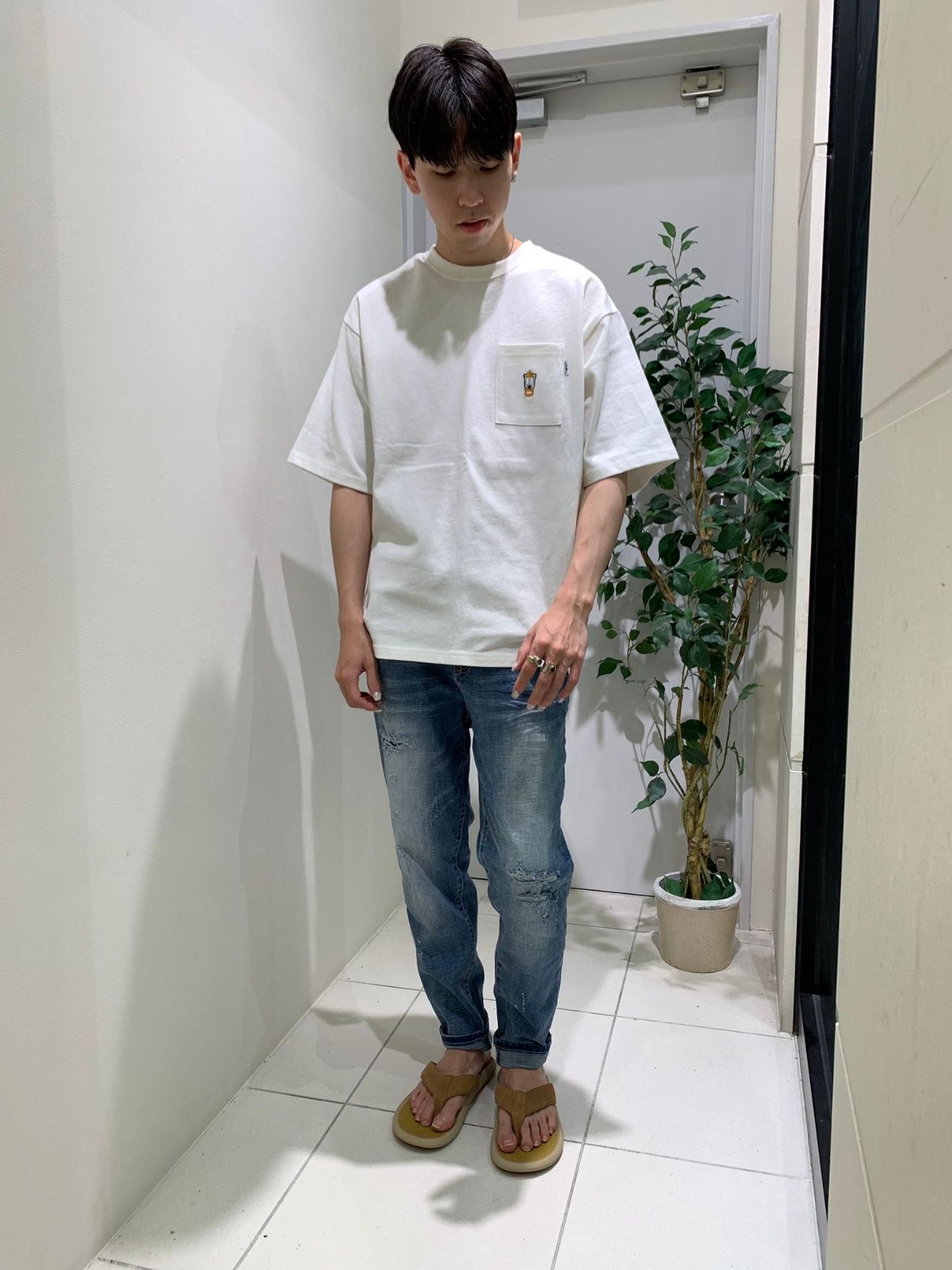 シンプルなポケTと色落ちしたデニムは王道の