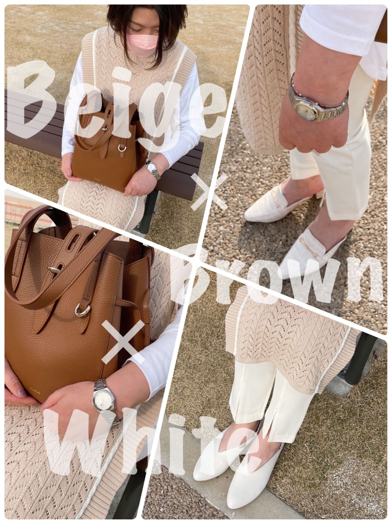 ベージュ×ホワイト×ブラウン