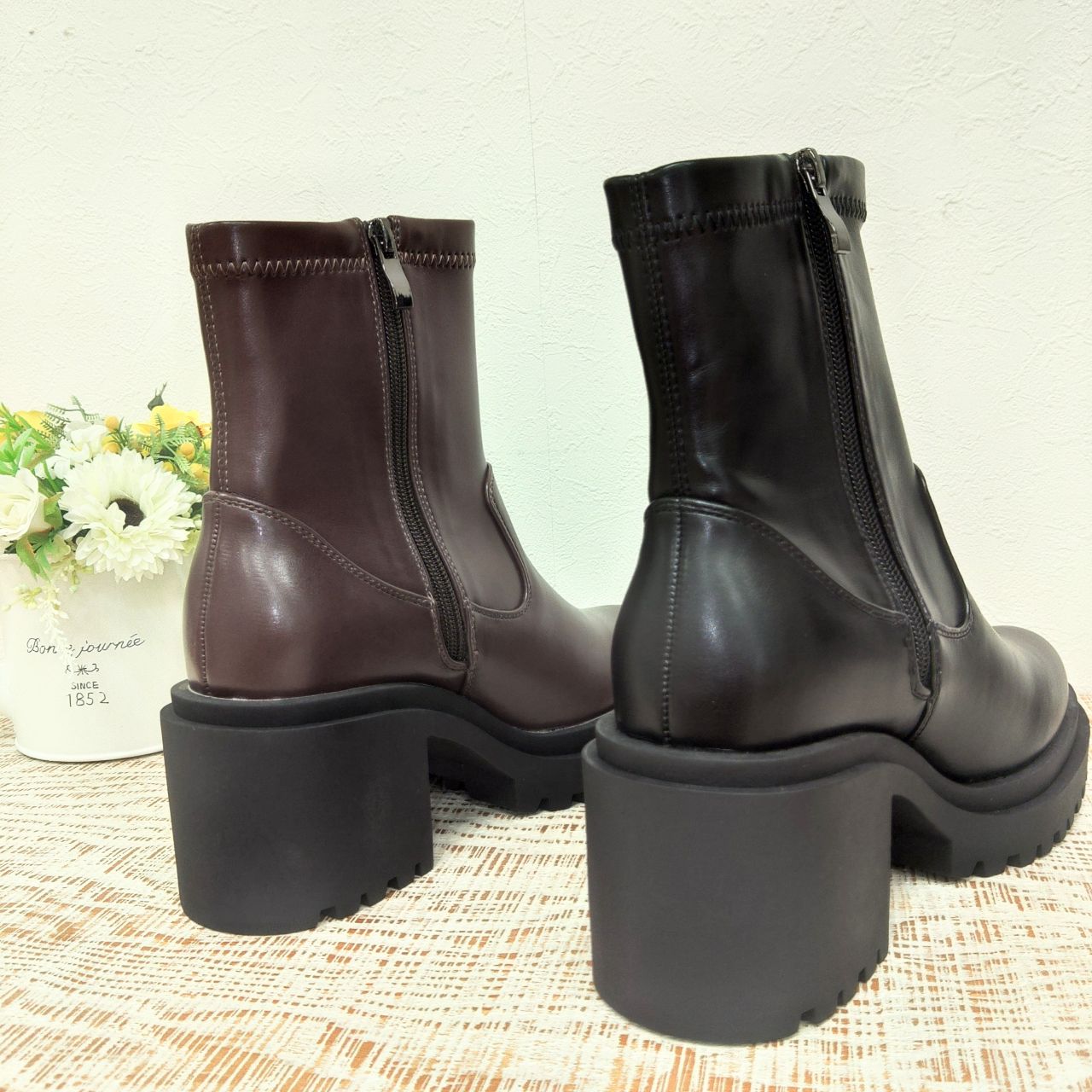 すっきり細めな筒回り、ほどよいボリュームの厚底で、コーデしやすいミドル丈のブーツです♪