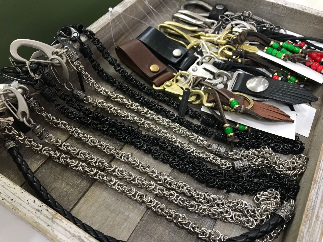 (手前)スチール+亜鉛合金のウォレットチェーン