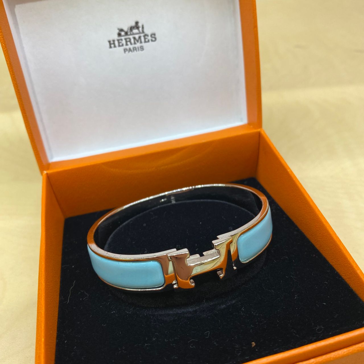 付け外しが簡単でエルメスの頭文字「H」の金具とシンプルなデザインが可愛らしいブレスレットです!