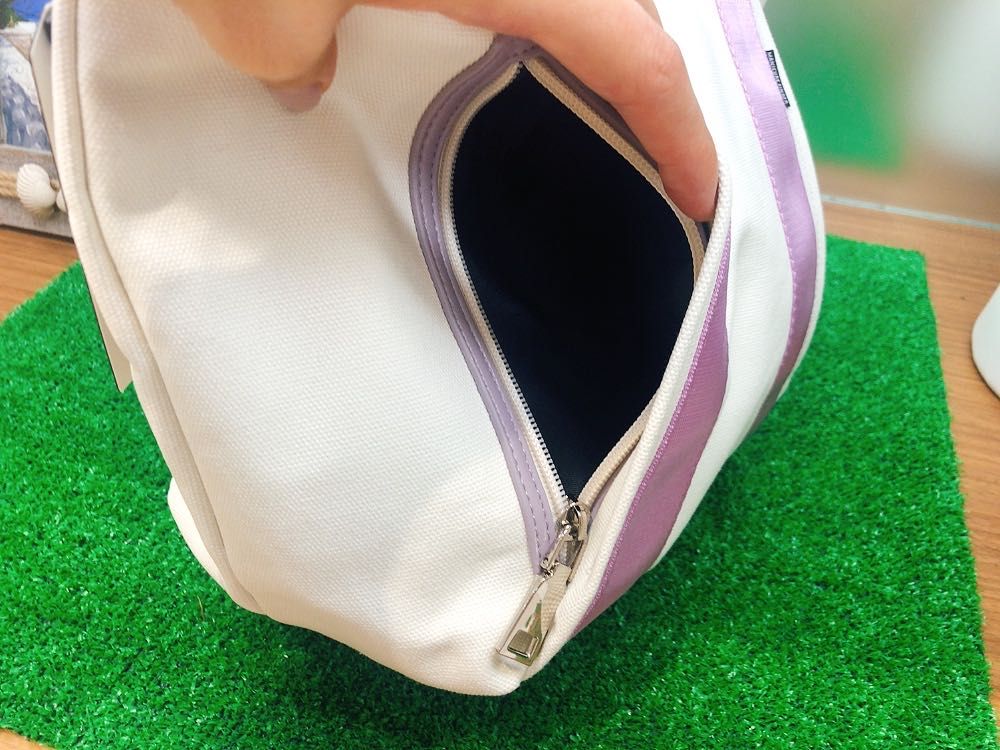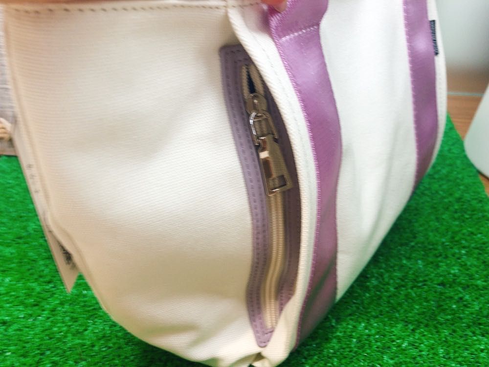 正面持ち手サイド部分には隠しファスナーポケットも付いているので鍵や小物を入れるのに便利ですよ(*´꒳`*)