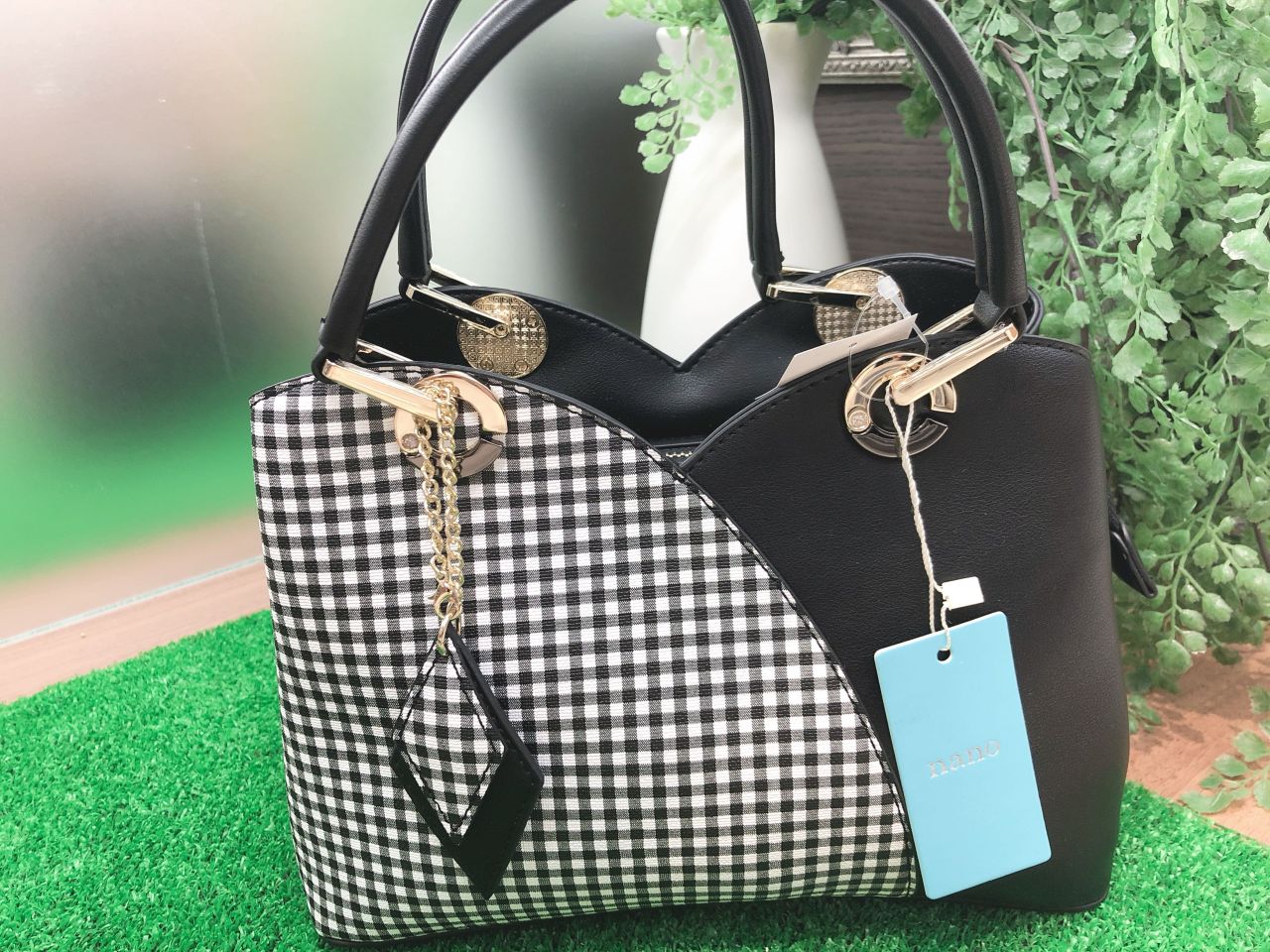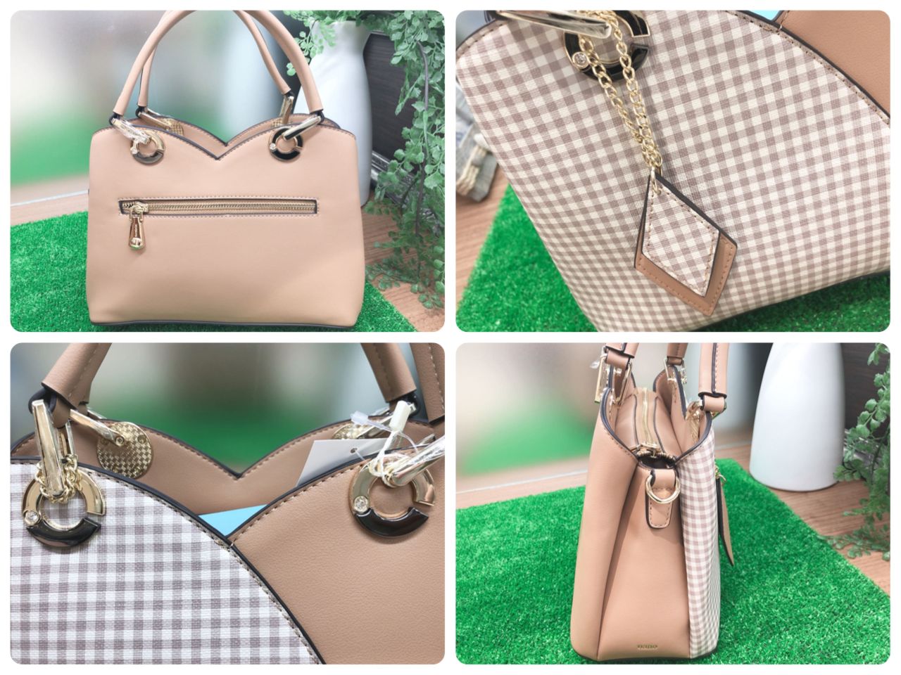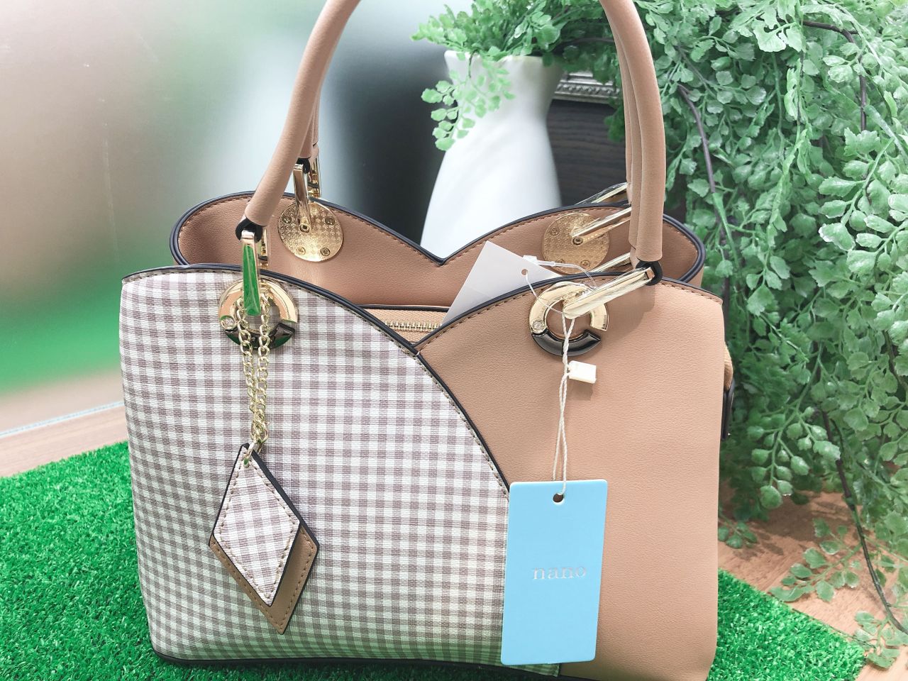 上部を山型のデザインでセンターを切り替えし、片側にチェック柄がプリントされた2wayバッグです♪