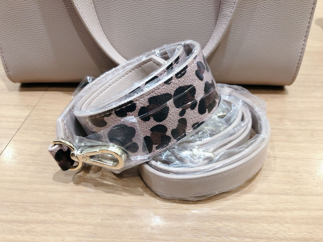 2wayでショルダーバッグとしてもお使いいただけるこちらのバッグ!なんと!!ベルトがレオパード柄とバッグと同色の2タイプついているのでシーンや服装に合わせて使い分けれますよ(*^^*)