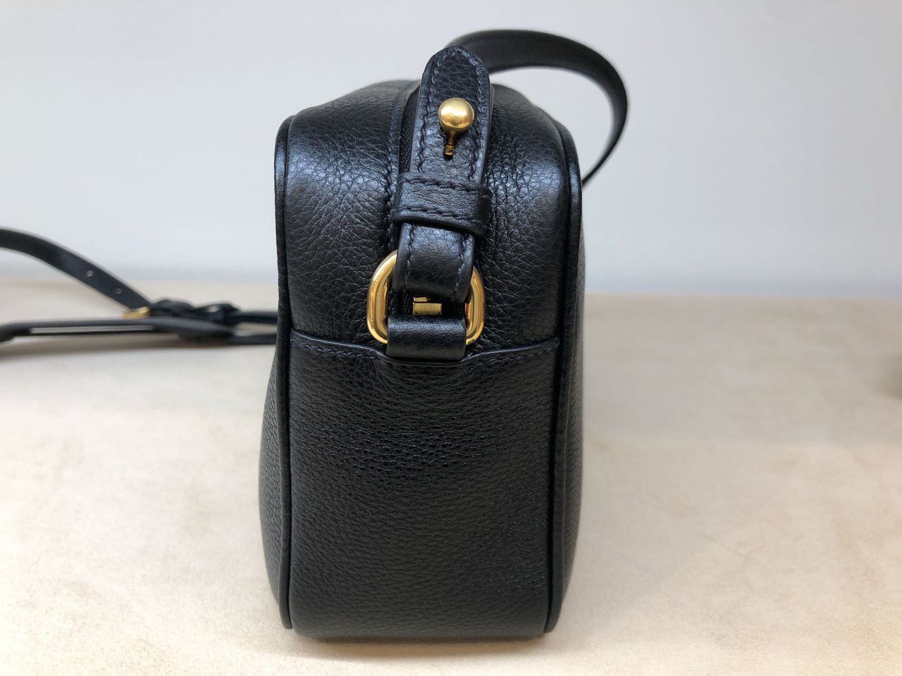 シックなブラックボディに飾られたゴールドメタルロゴが、エレガントさを醸し出すショルダーバッグ★