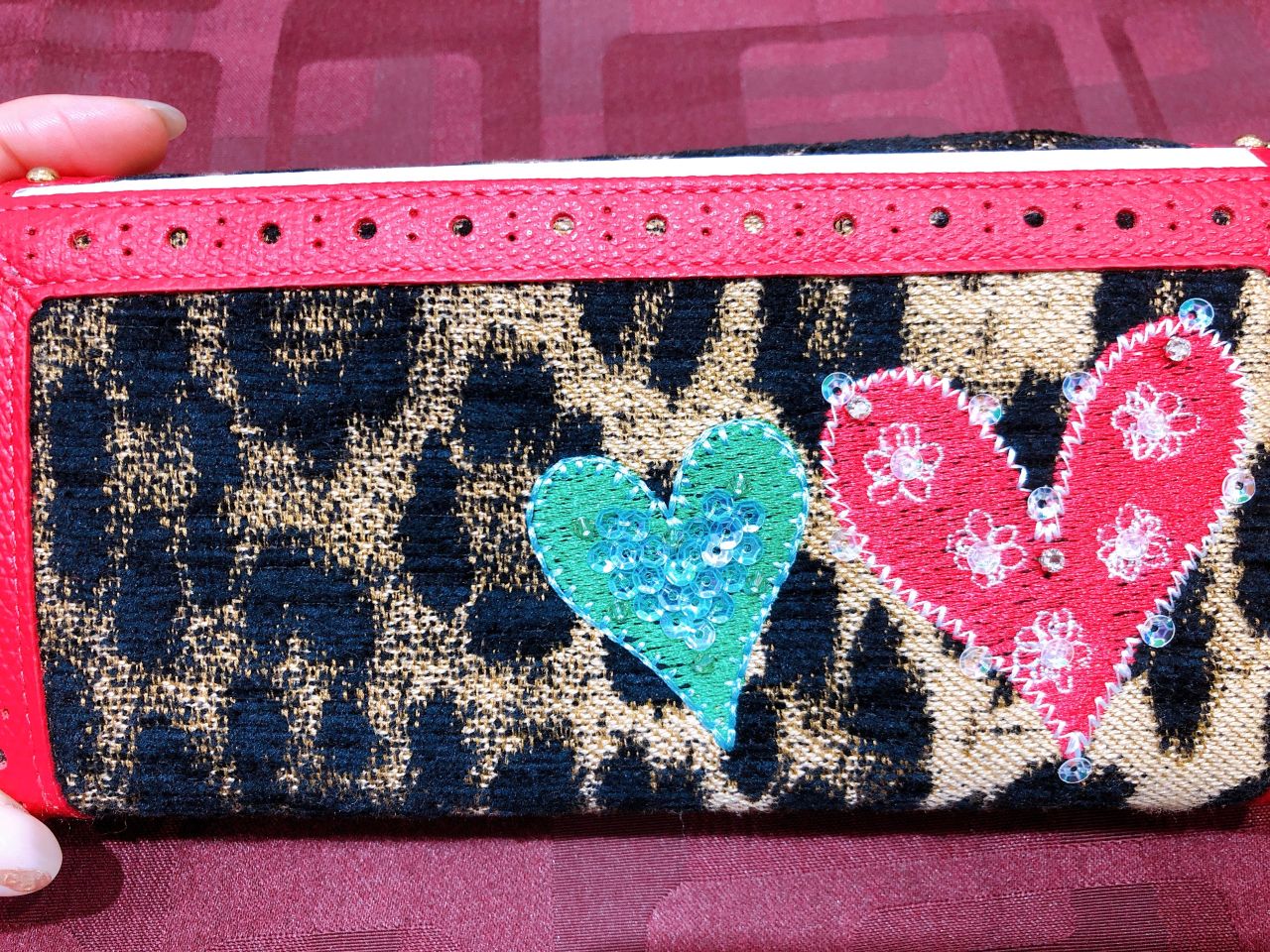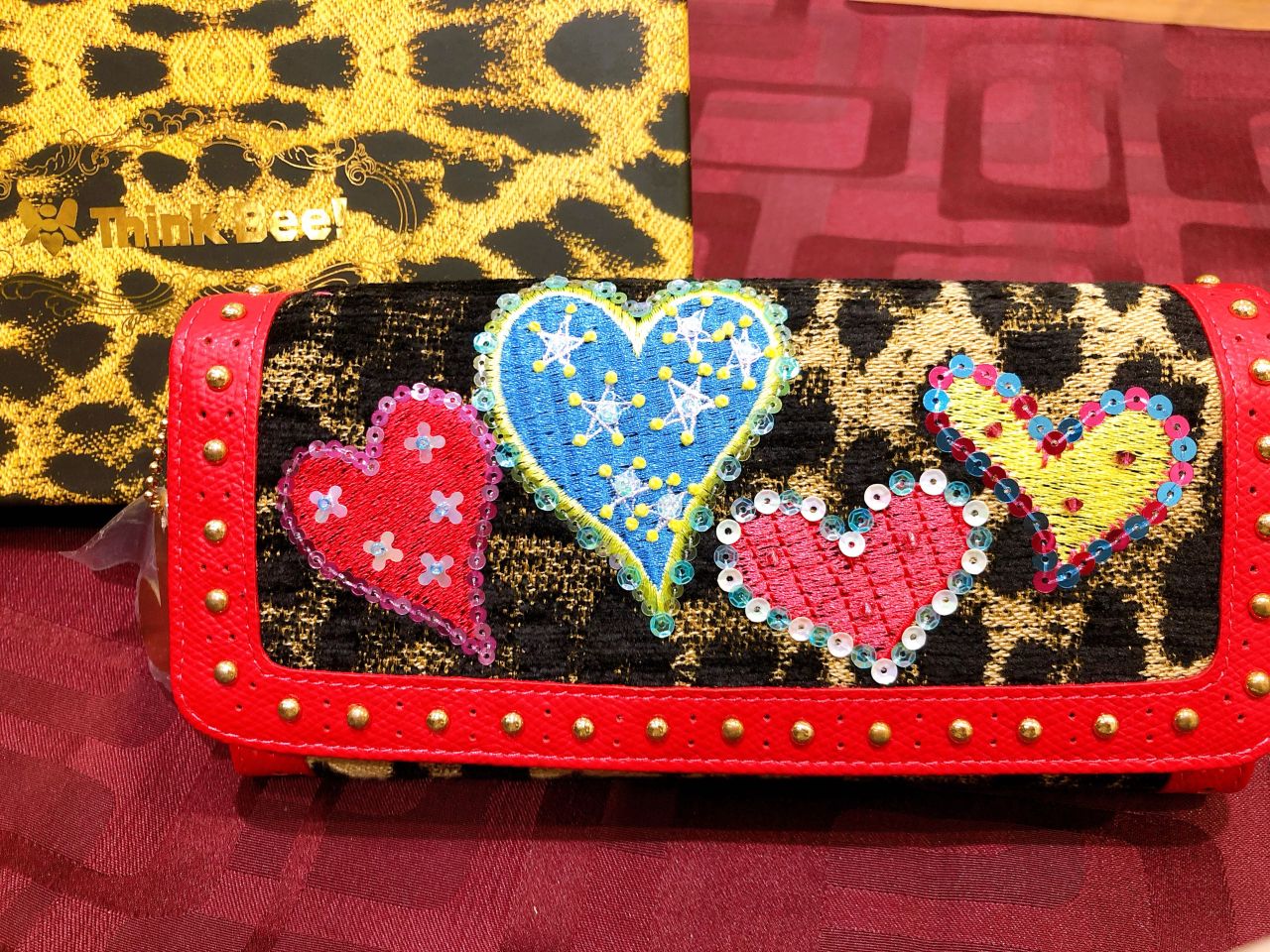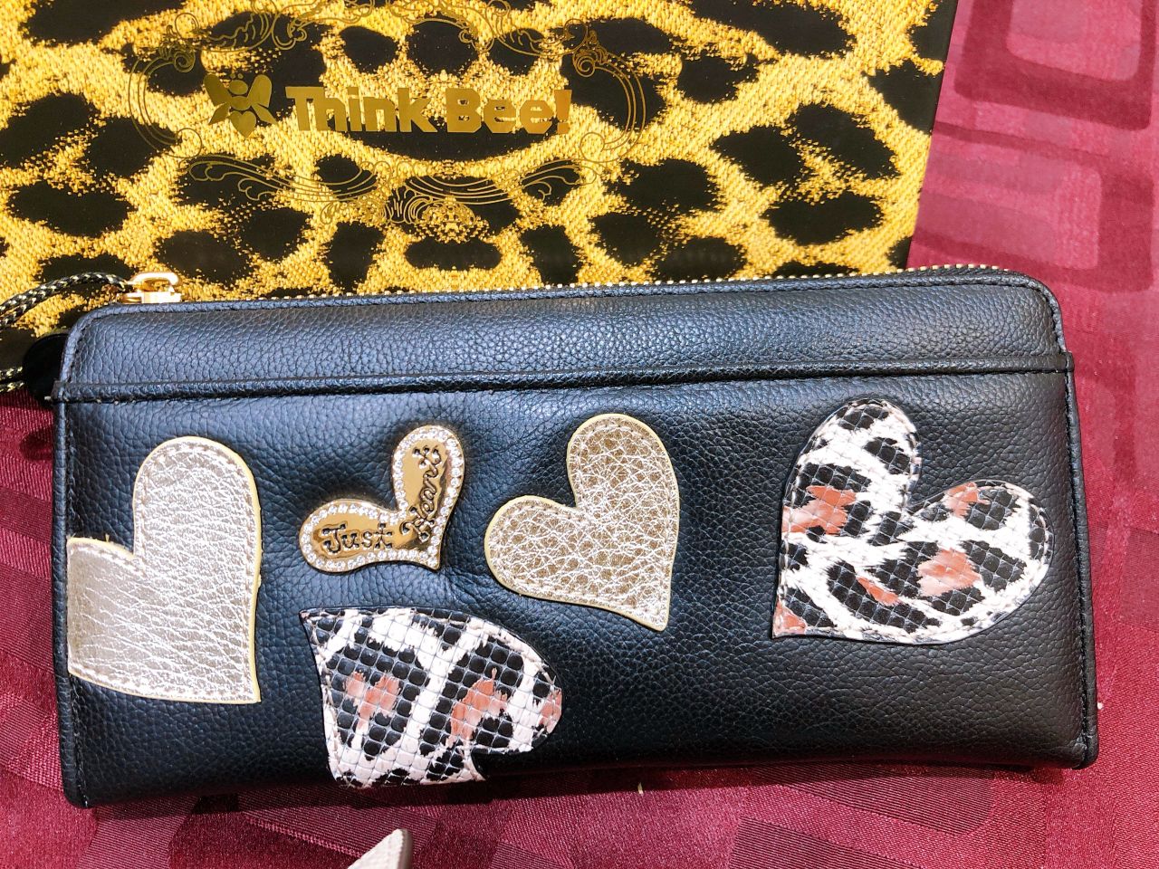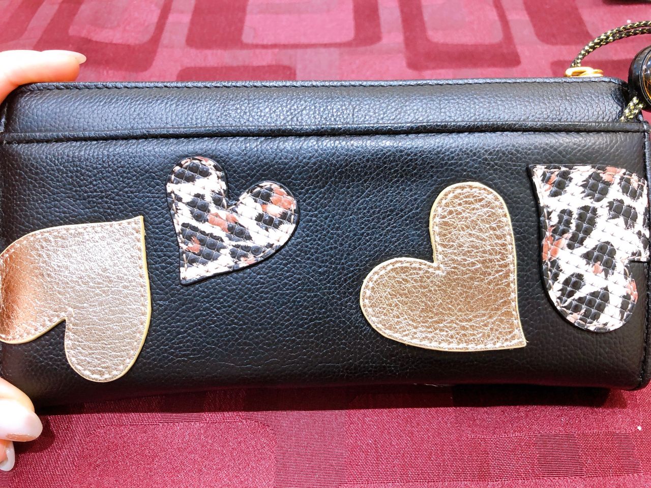 ブラックのボディにシャンパンゴールドとレオパードのハートが煌めく