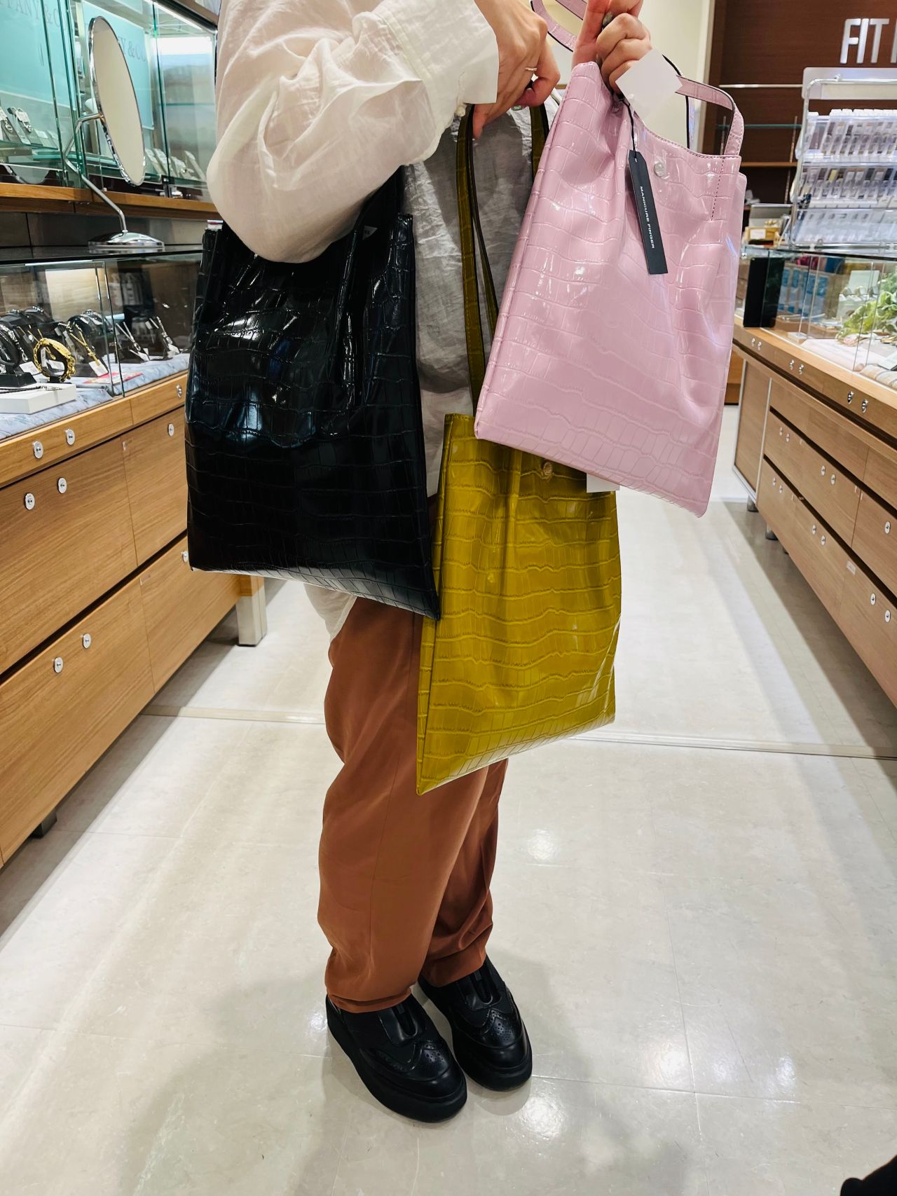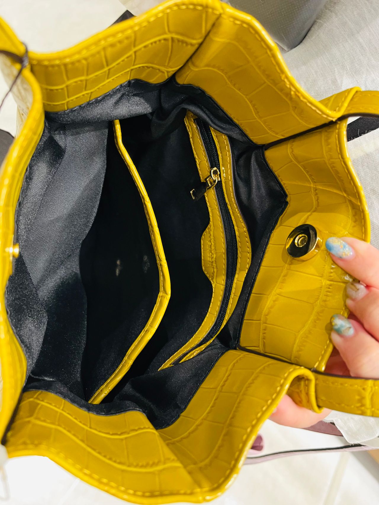 クロコダイル派 A子ちゃんは、単色だけど、存在感あるクロコ(イエロー)を選びました…‼︎