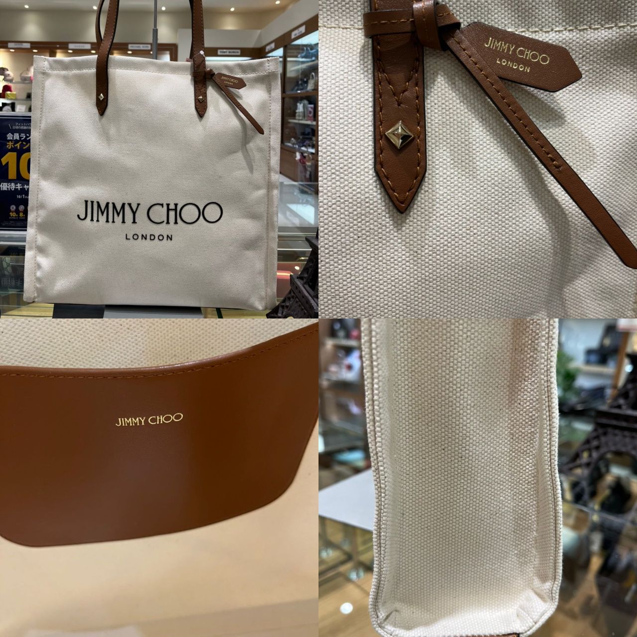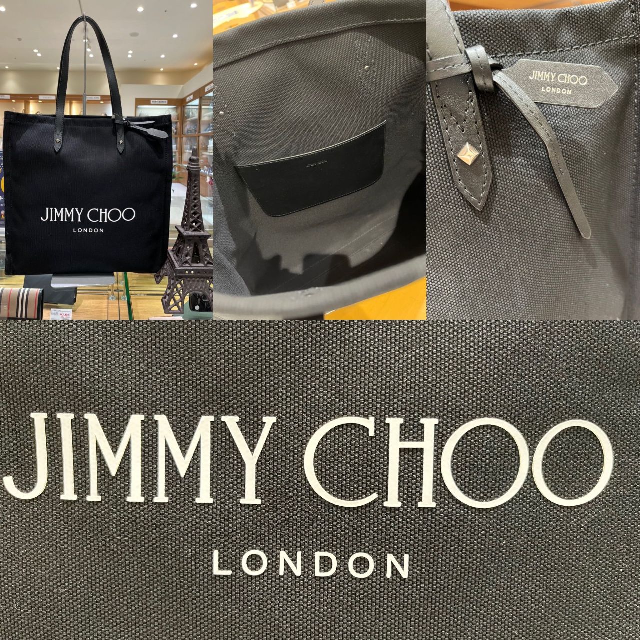 キャンバス地を使用したJimmyChooらしさ溢れるクラッシックなトートバッグ。