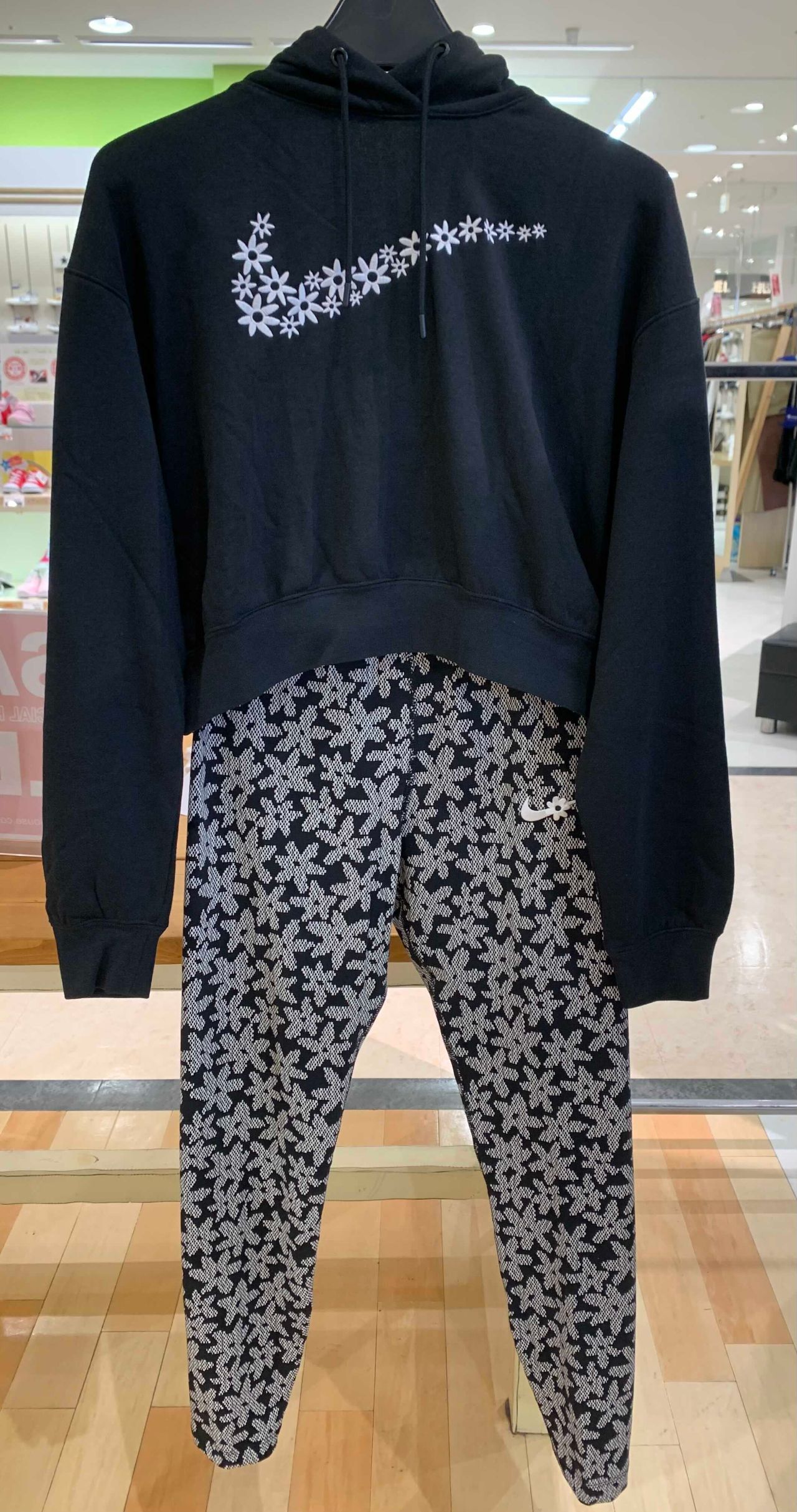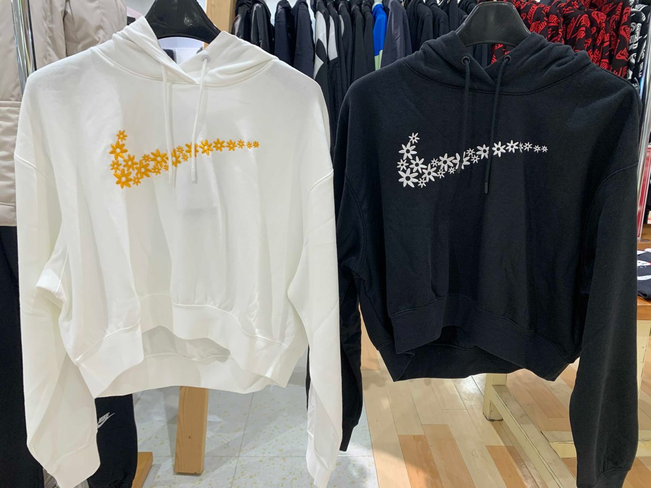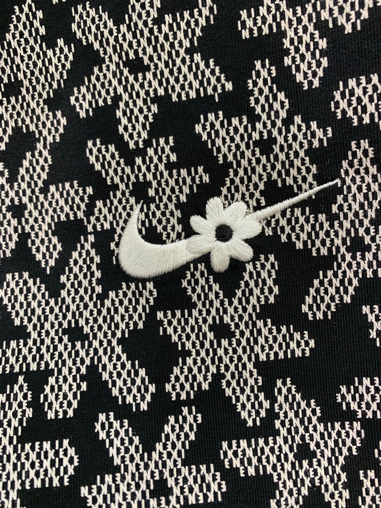 スウッシュにデイジーを刺繍した
