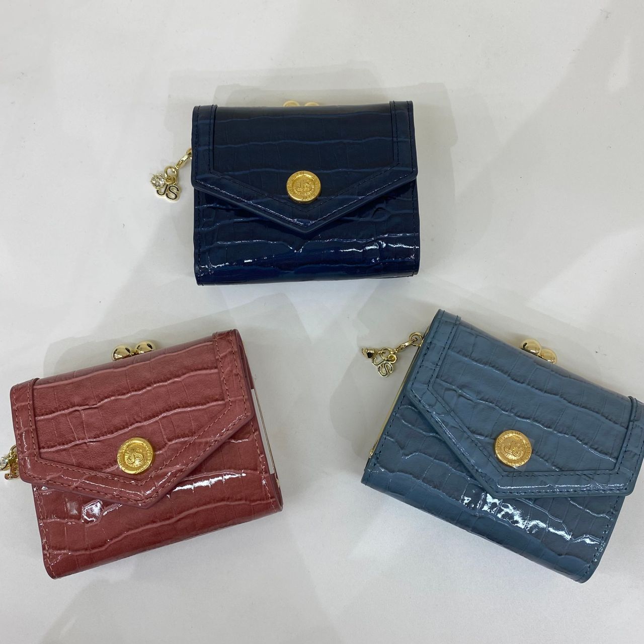 クロコの型押しにエナメルを施したデザインで