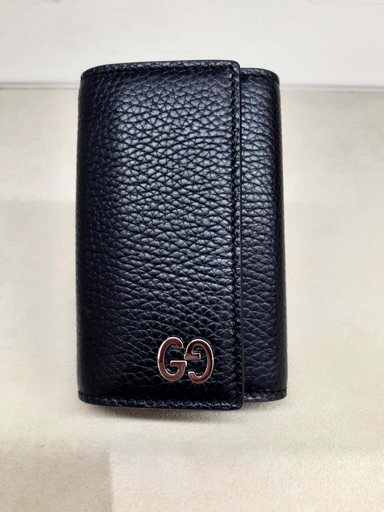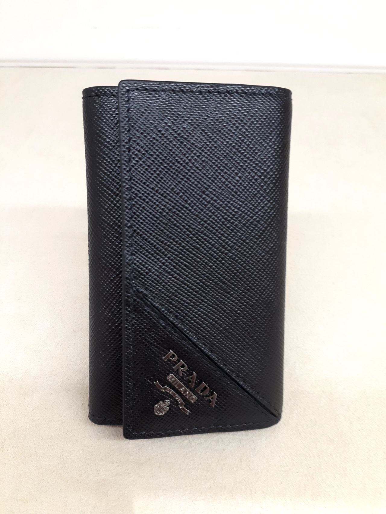 キズが付きにくい「サフィアーノレザー」にガンメタリックのロゴメタルパーツがアクセントになった6連キーケース。