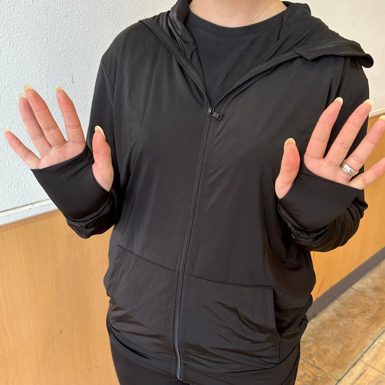 日焼け対策が出来るフード付きパーカーを