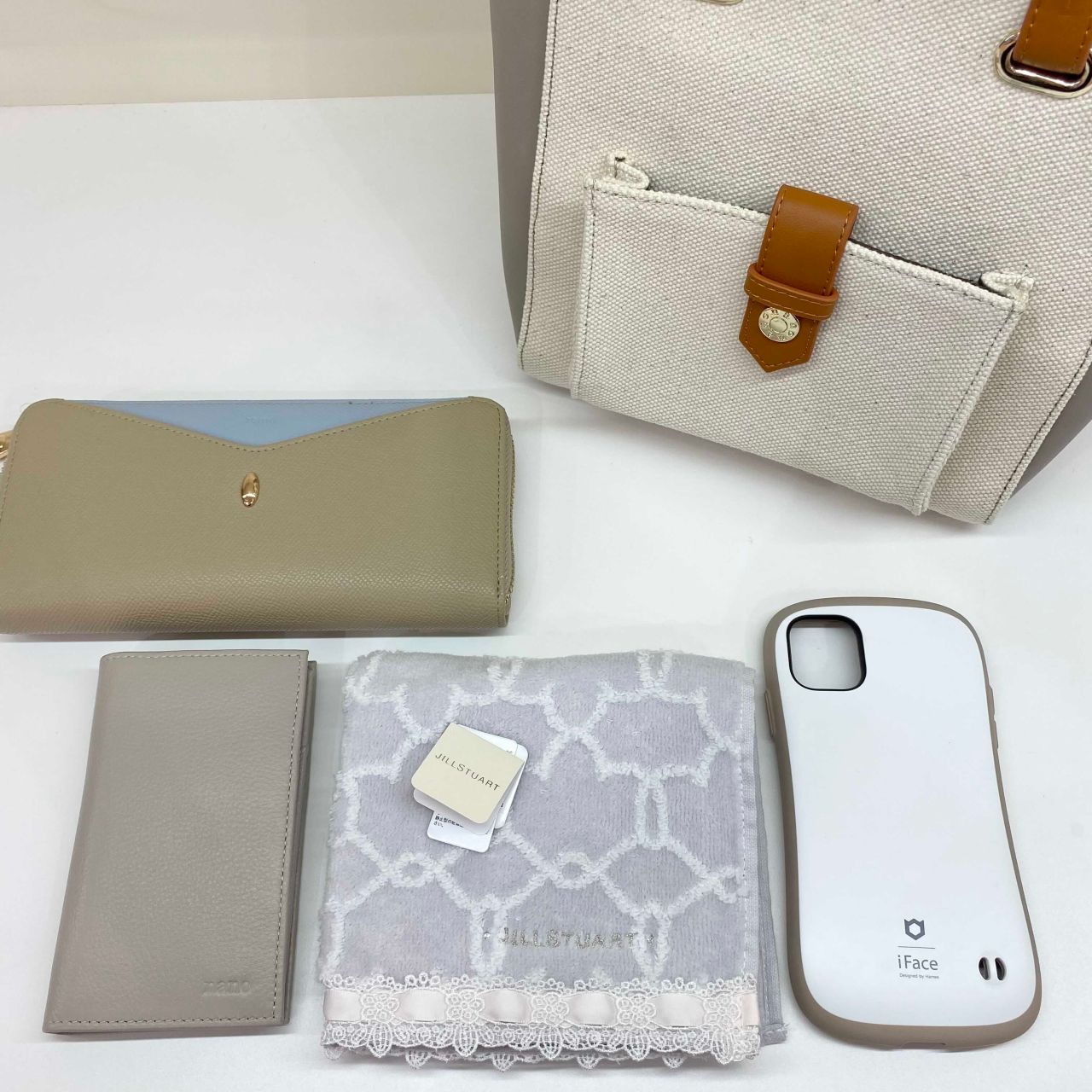 長財布、カードケース、ハンカチ、携帯電話を