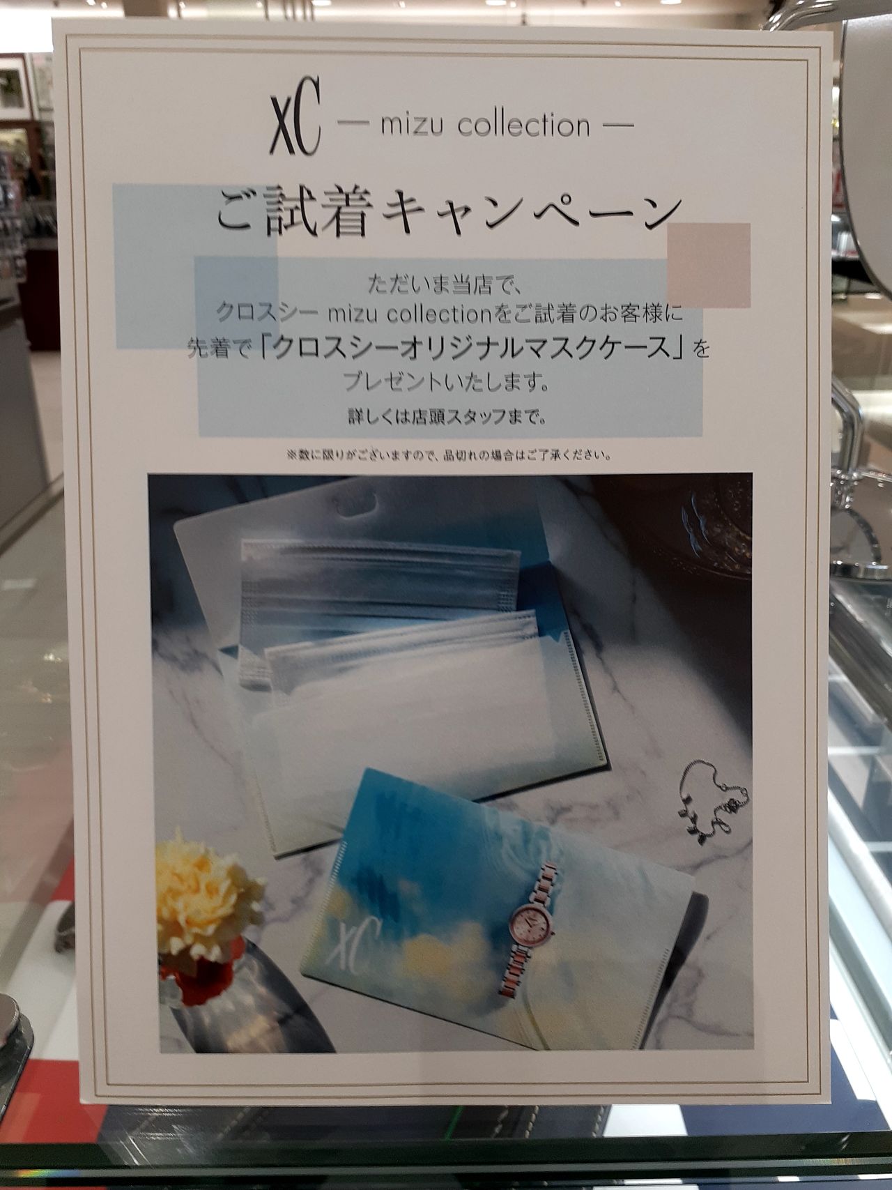 さらに、ただいま当店でmizu collectionをご試着頂いたお客様に先着で「クロスシーオリジナルマスクケース」をプレゼント致します。