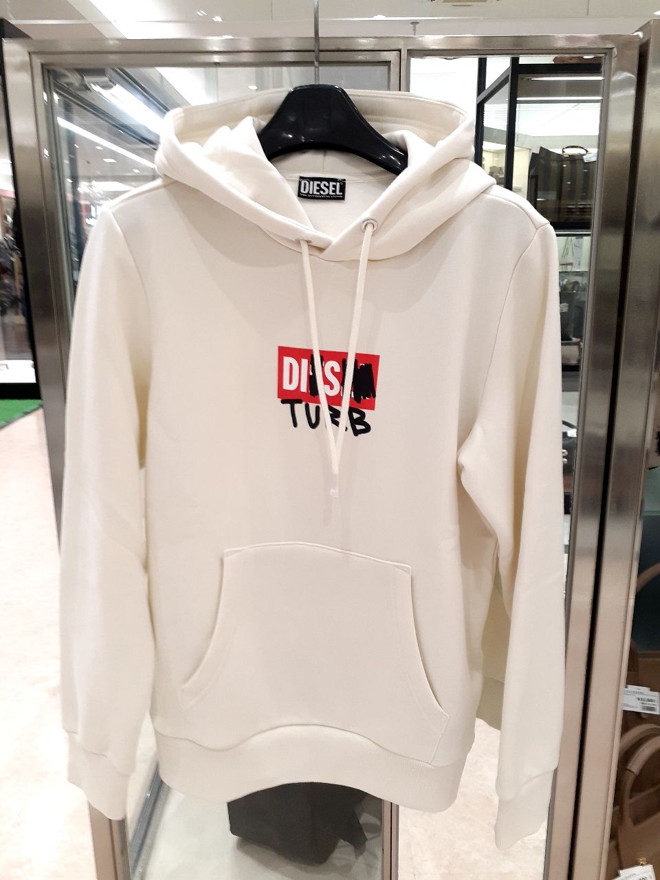 遊び心のあるDIESELのボックスロゴが目を引くスウェットパーカー。