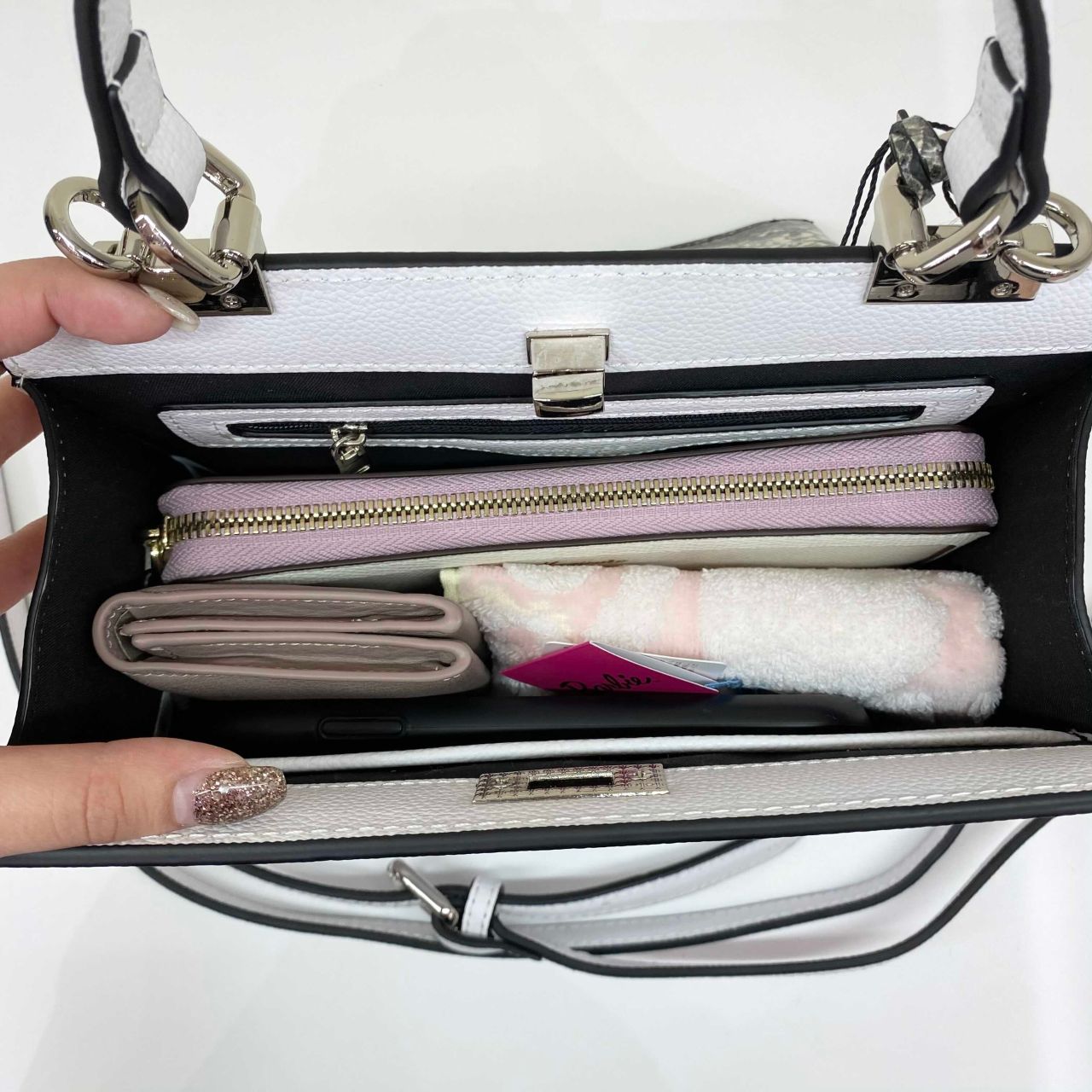長財布も携帯もすっぽり入り、