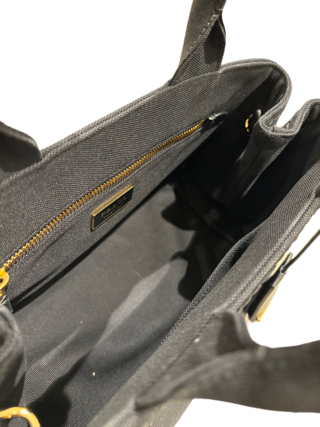 丈夫なキャンバス地に「PRADA」のロゴが入ったシンプルなデザインのトートバッグです!