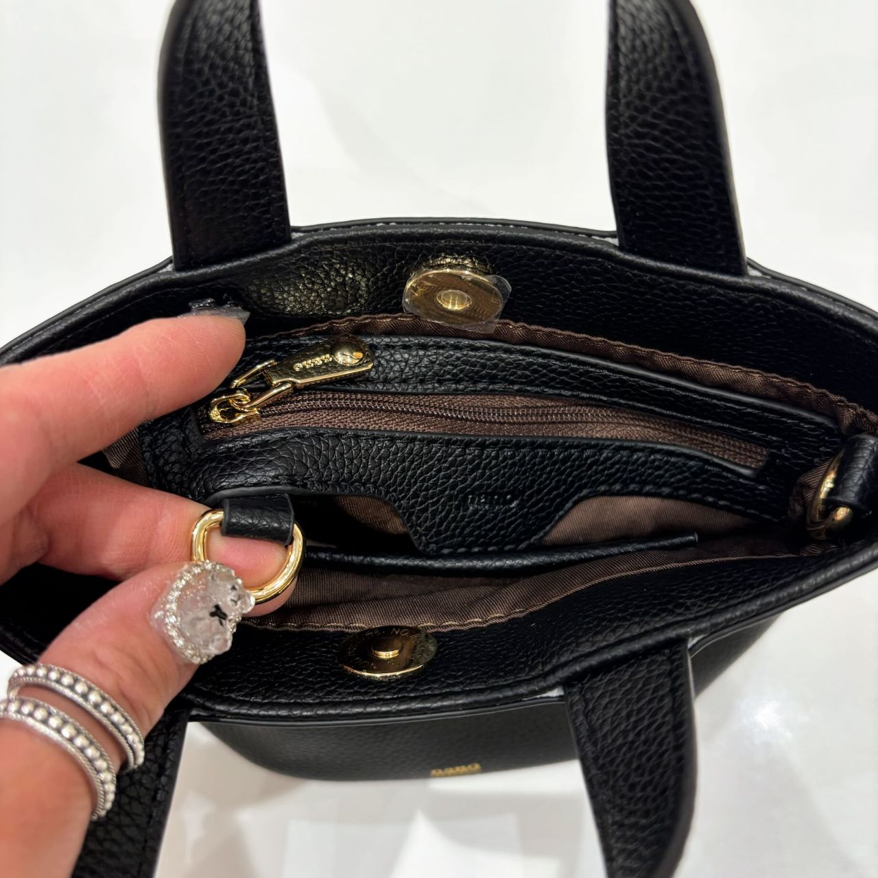 ファスナー付きポケットの下にDカンが付いているので、キーホルダーなども付けれます!! ( Ꙭ )