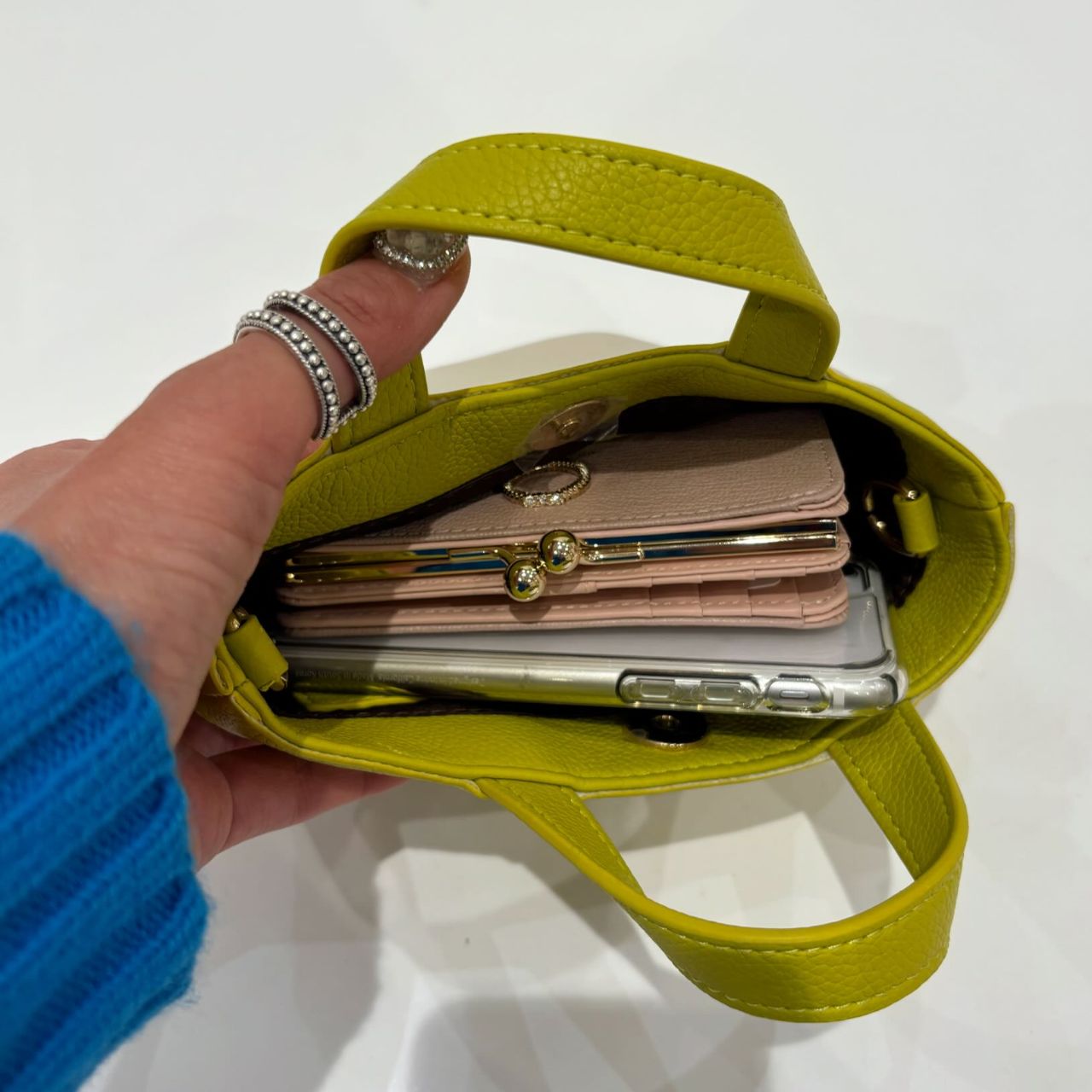 小さめのサイズ感ですが、折財布とスマートフォンが入ります!! ჱ̒✧°́⌳ー́)੭
