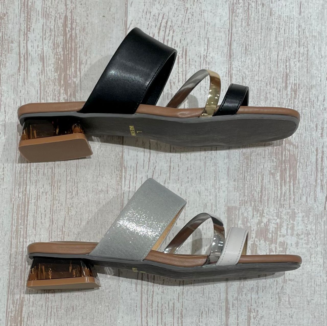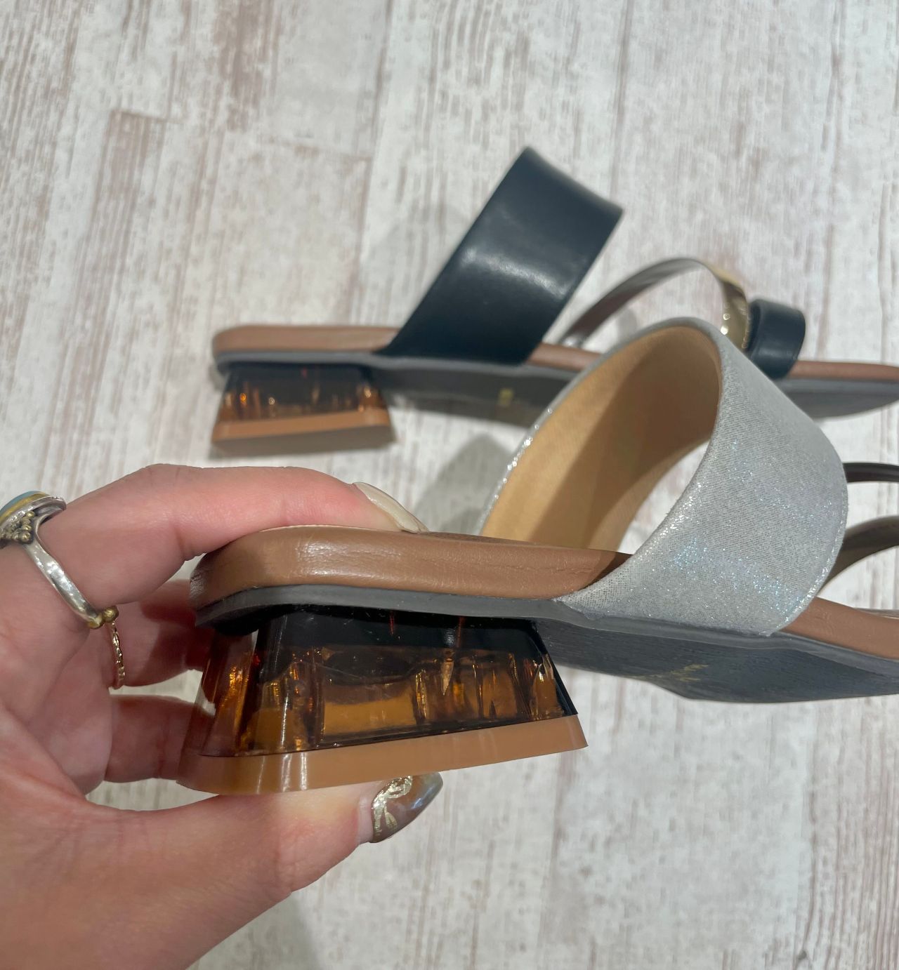 太めのヒールで安定感のあるミュール︎︎︎︎︎☺︎真ん中のピースが目を惹きます!!クリアヒールがポイント*°♡