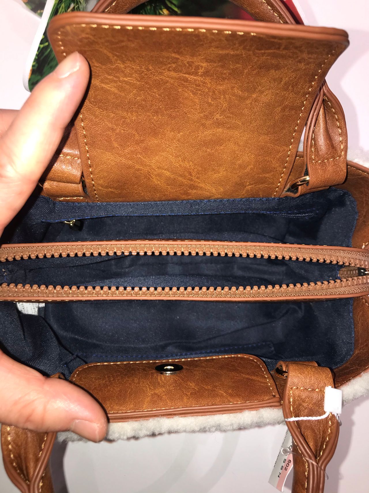モコモコ素材のショルダーベルト付き