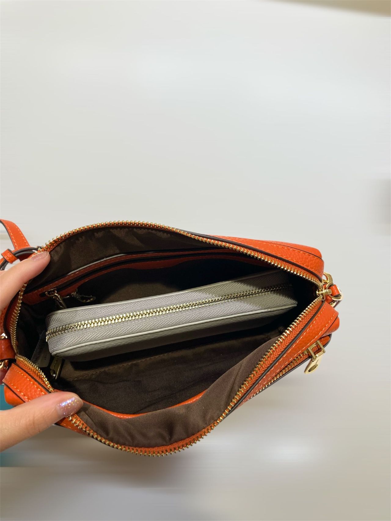 長財布を入れてもまだ空間があり、出し入れが苦にならない口が開きやすいデザインです!