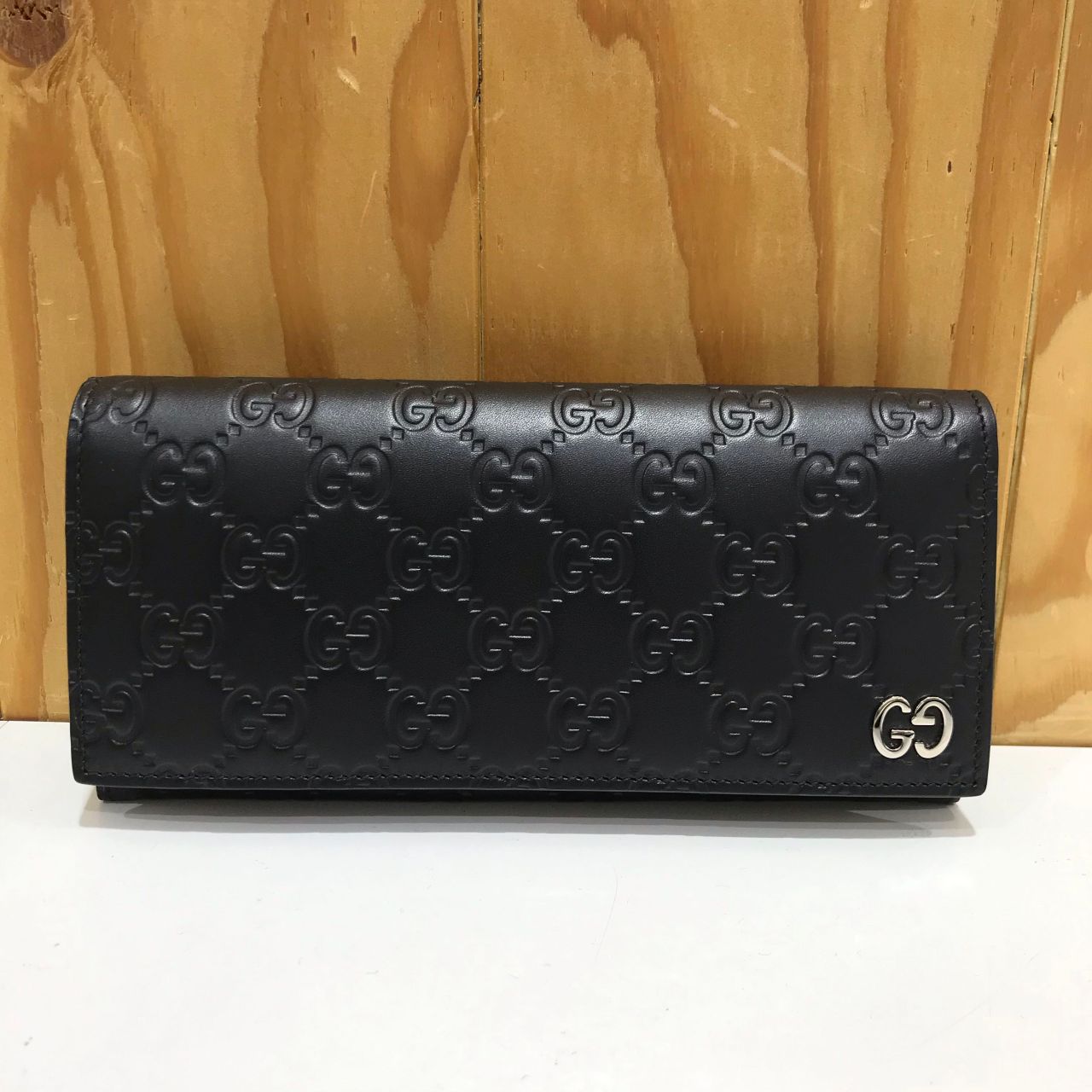 高級感漂うグッチシマレザーにGGの金具がポイント。
