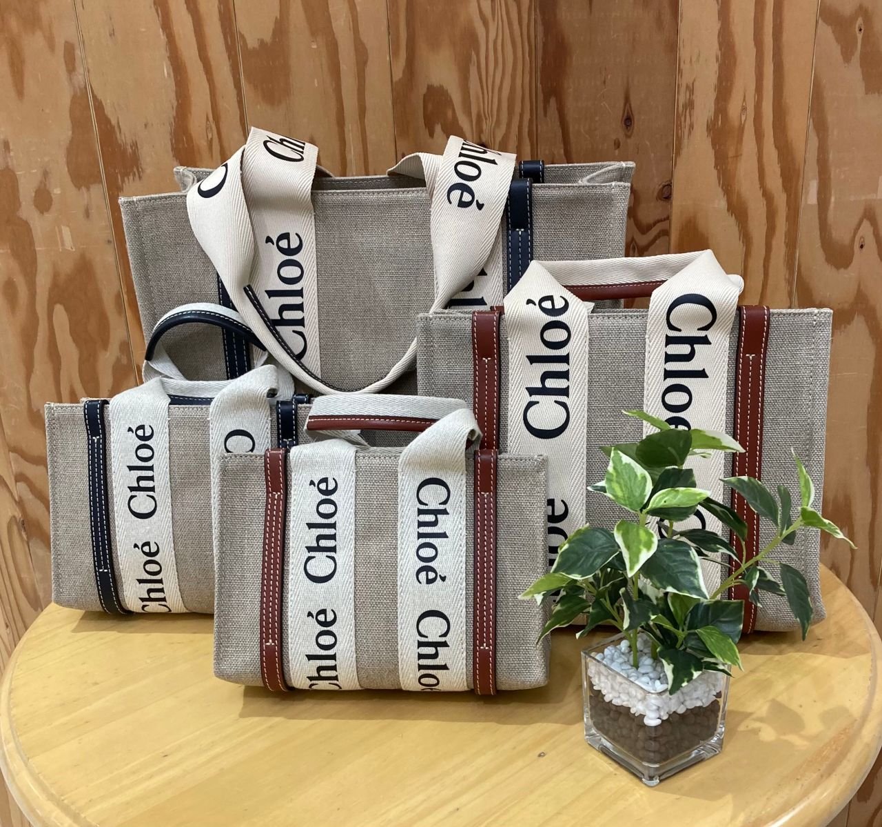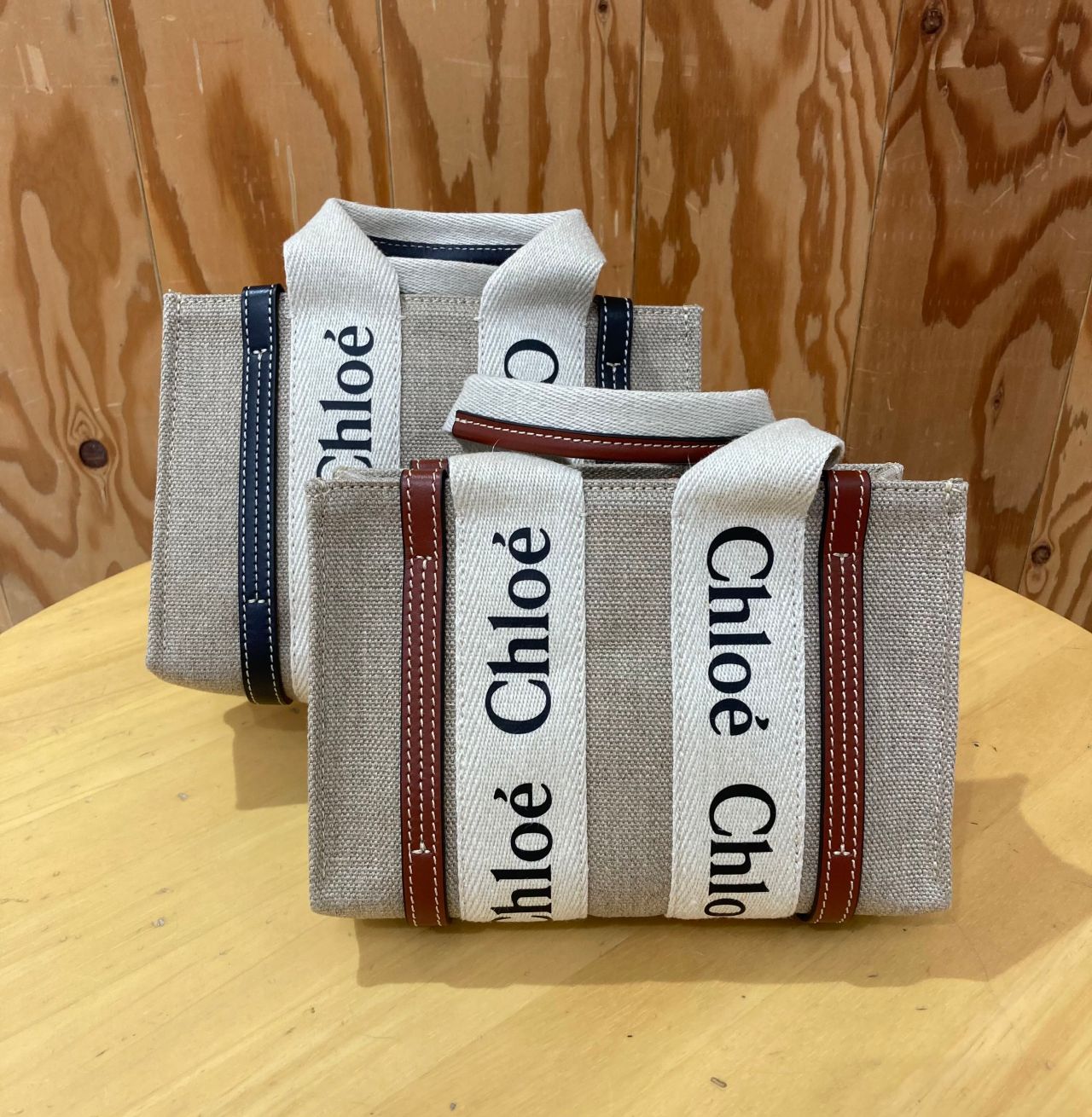 ナチュラルな風合いのコットンキャンバスボディにカーフスキンのラインとChloéロゴリボンが目を惹くWoodyシリーズ♡