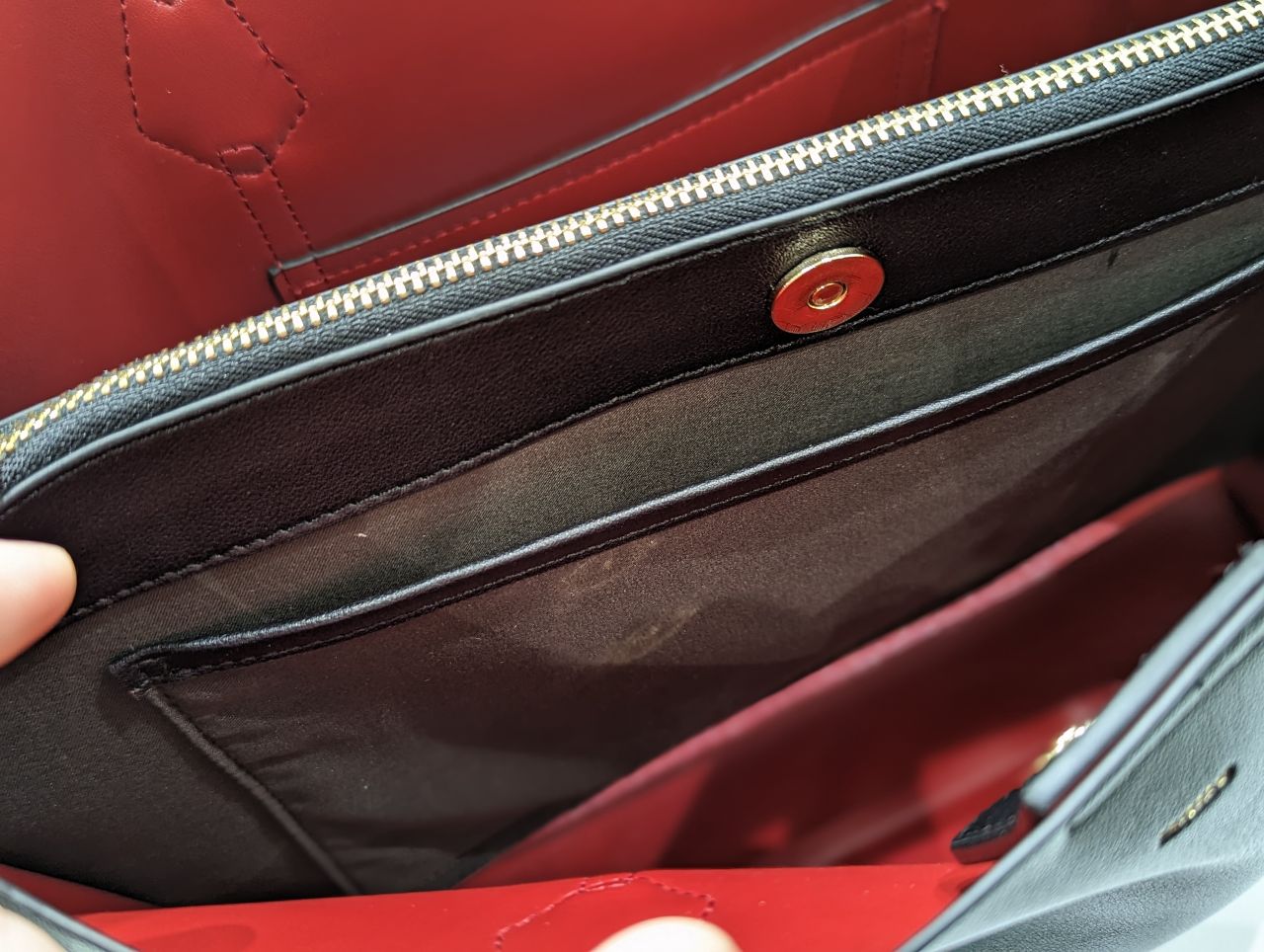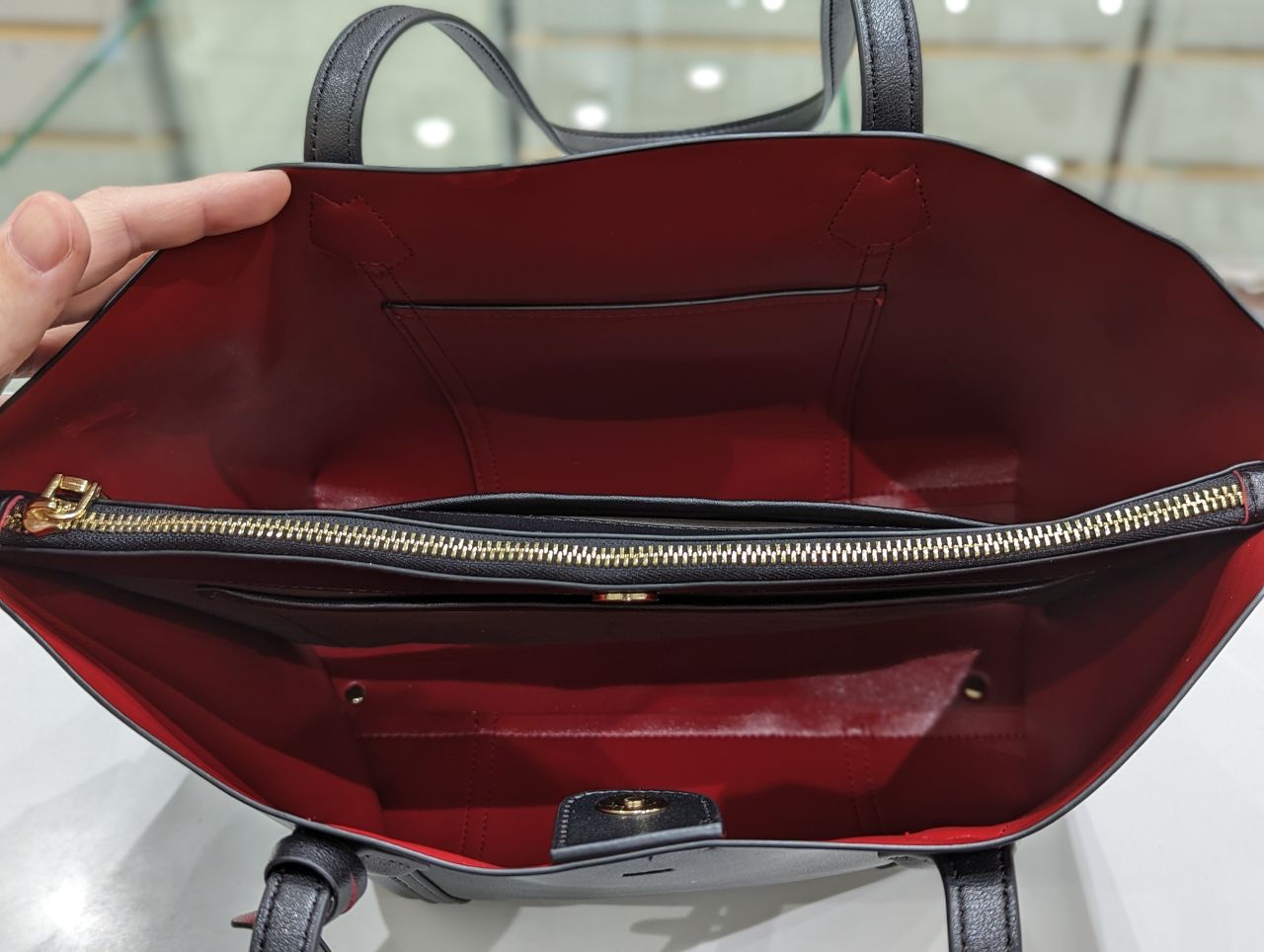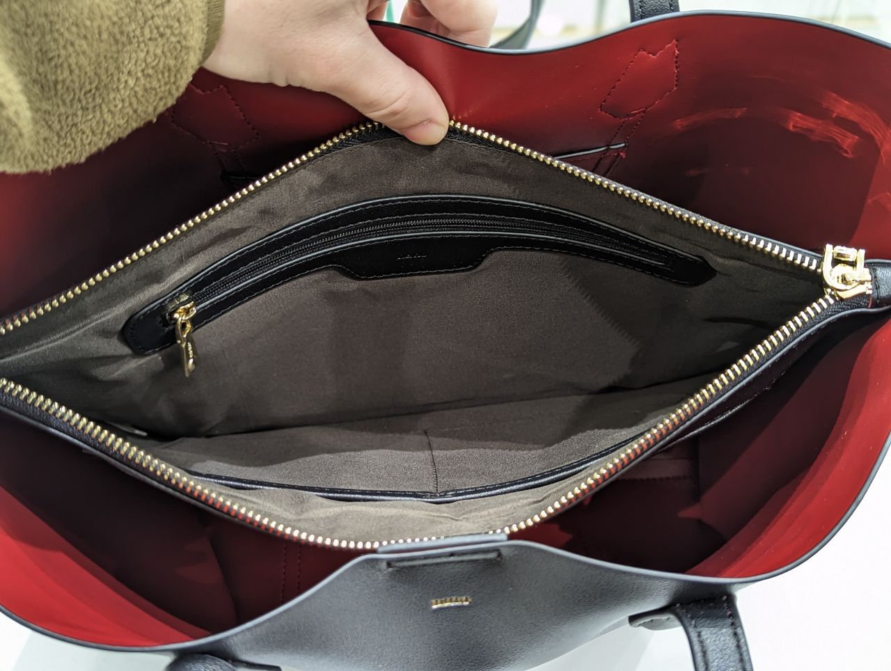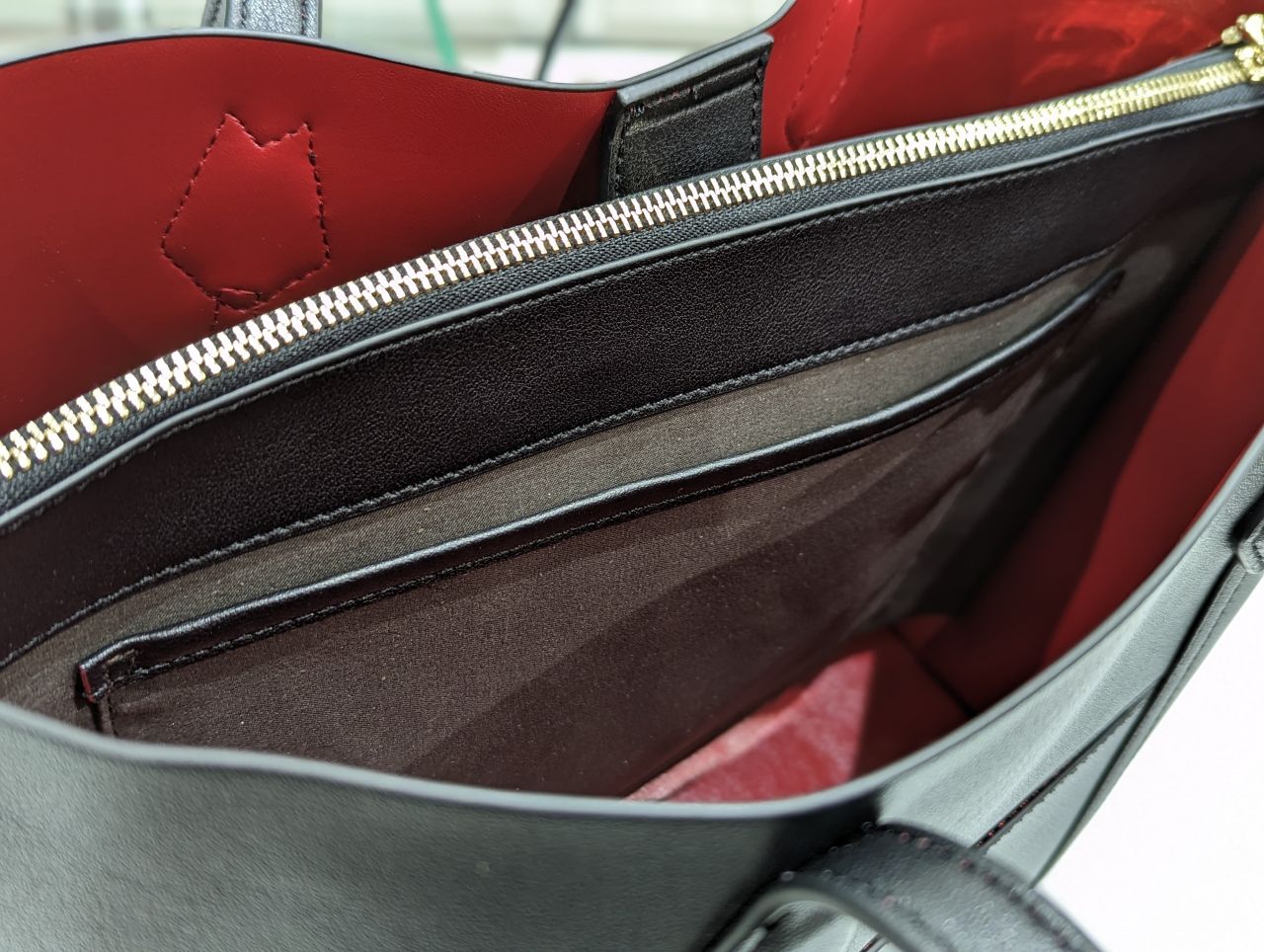 中は、センターのファスナー付きの仕切りで