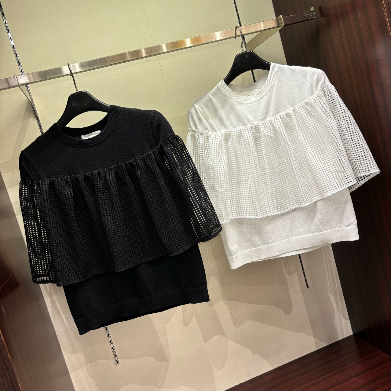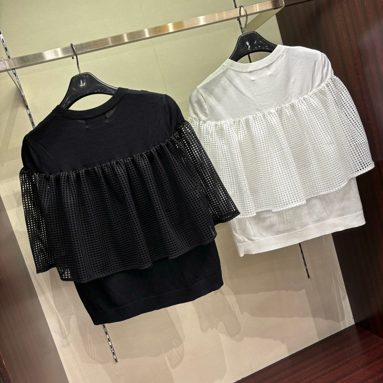 メッシュと薄手のニット生地の切り替えしが