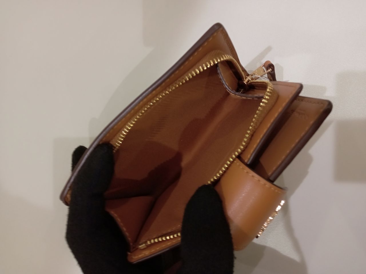 サイドから内側のキャメルカラーの