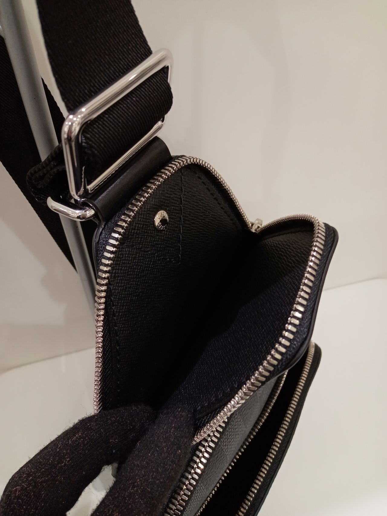 ショルダーストラップの下部分は金具を左右に付け替え可能です。