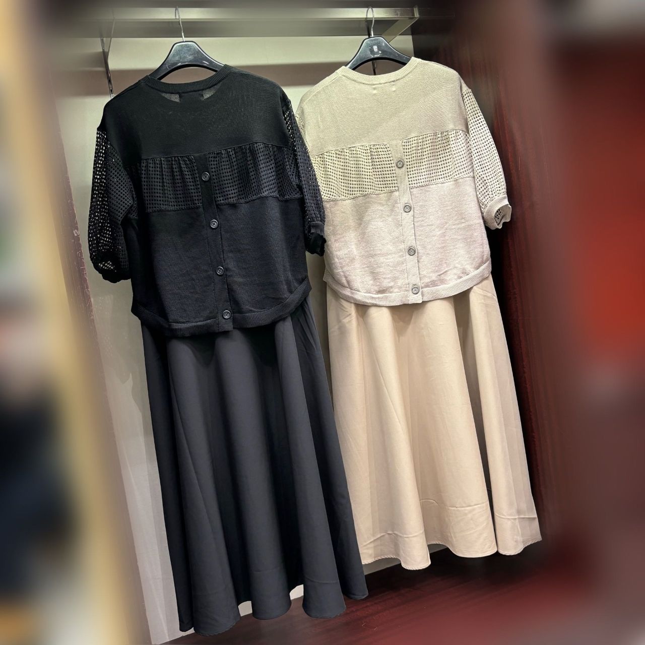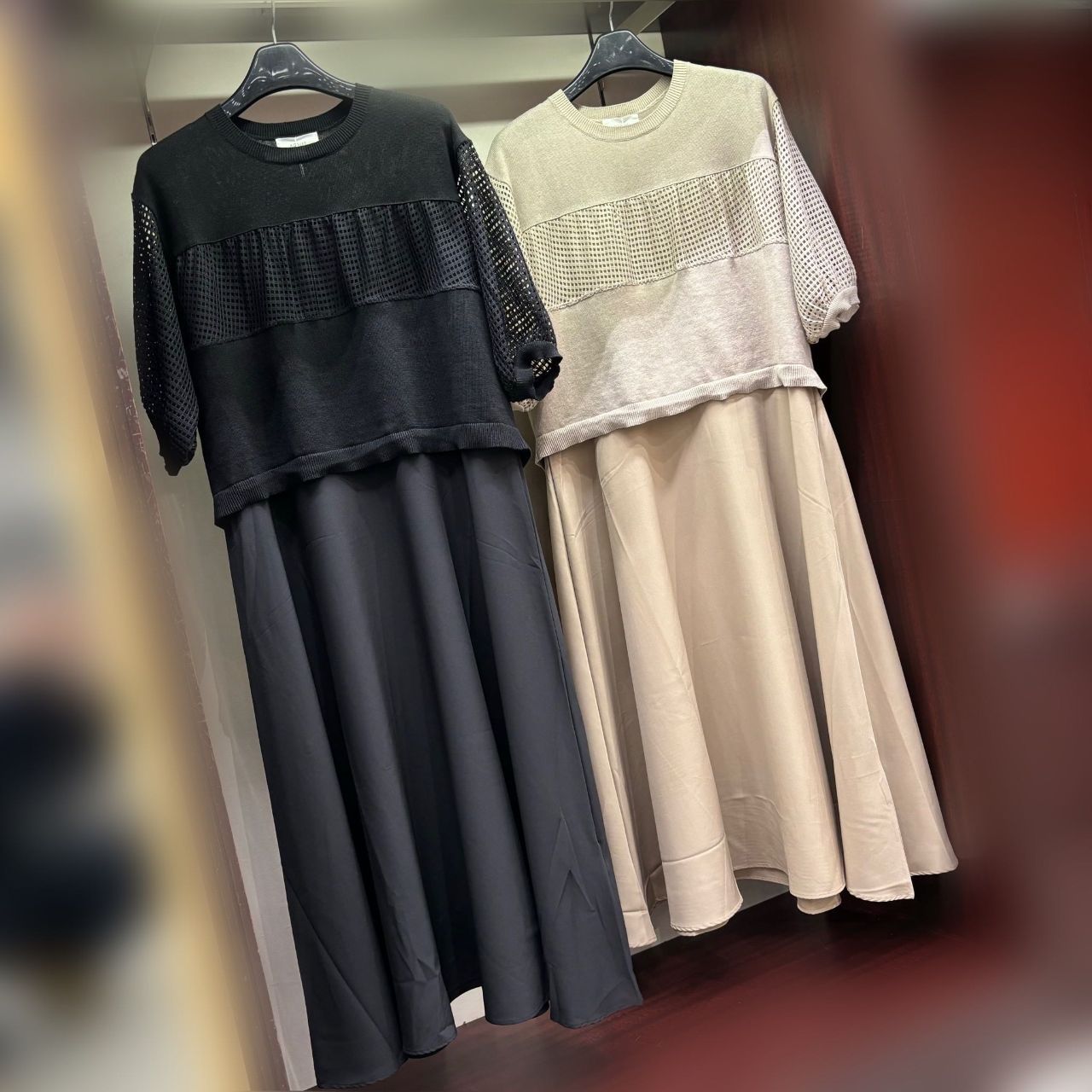 レイヤード風異素材ドッキングワンピース