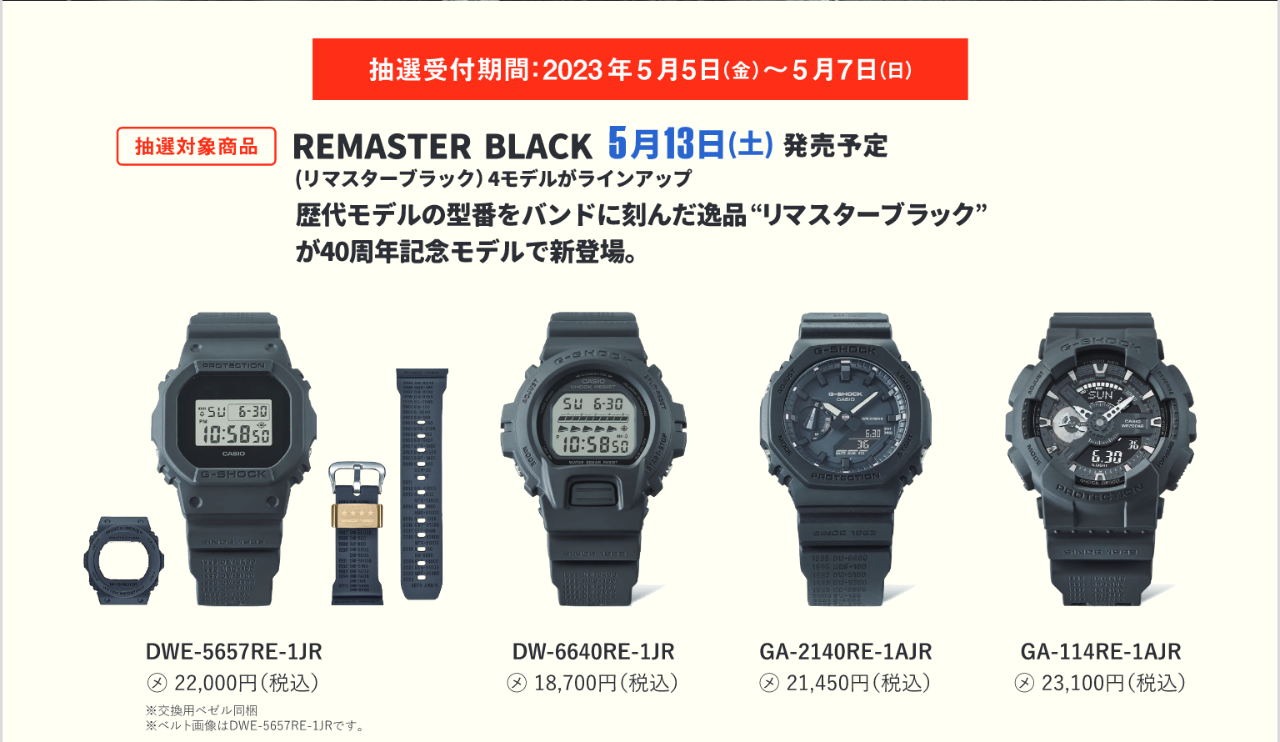ジーショック(G-SHOCK)40周年モデル抽選受付開始!!